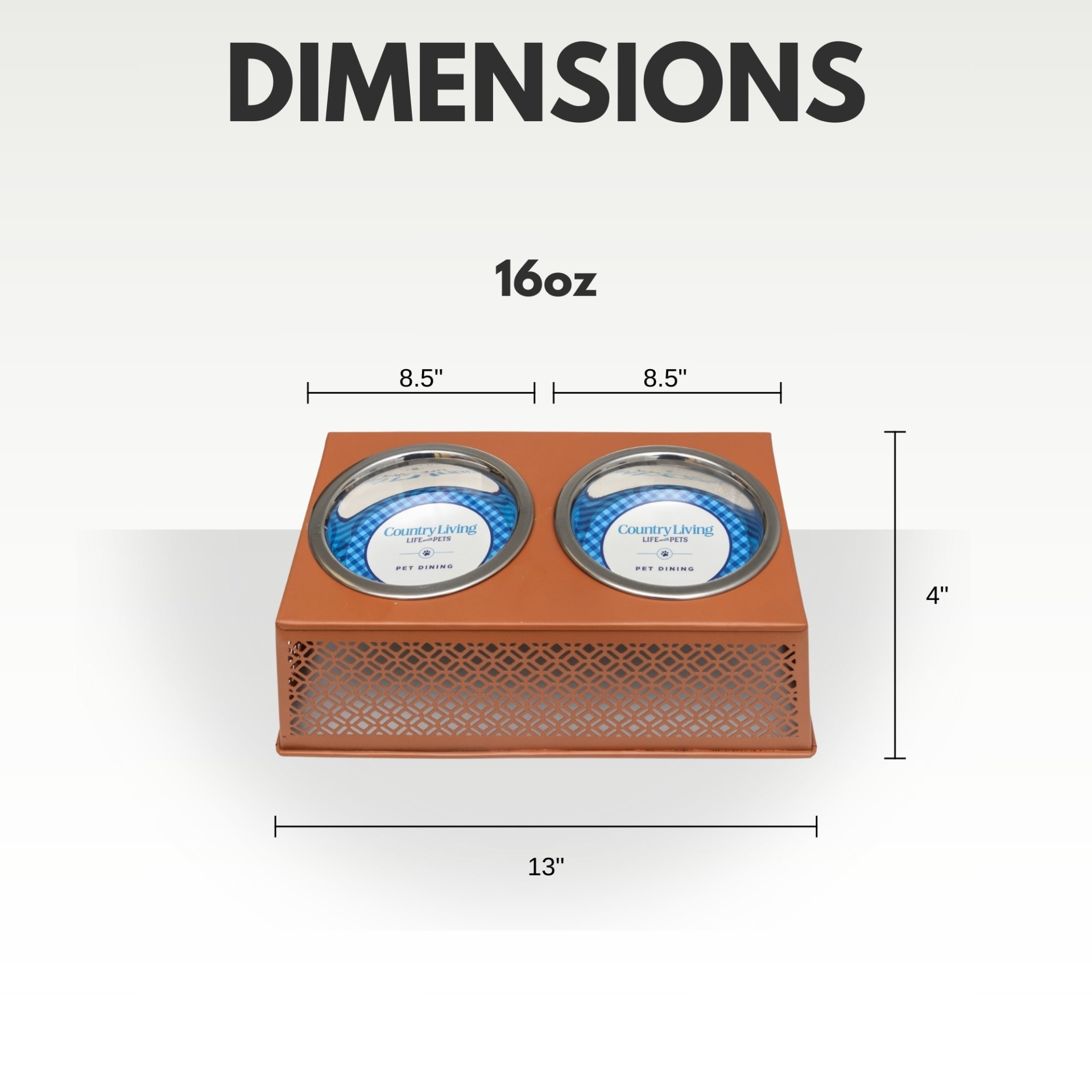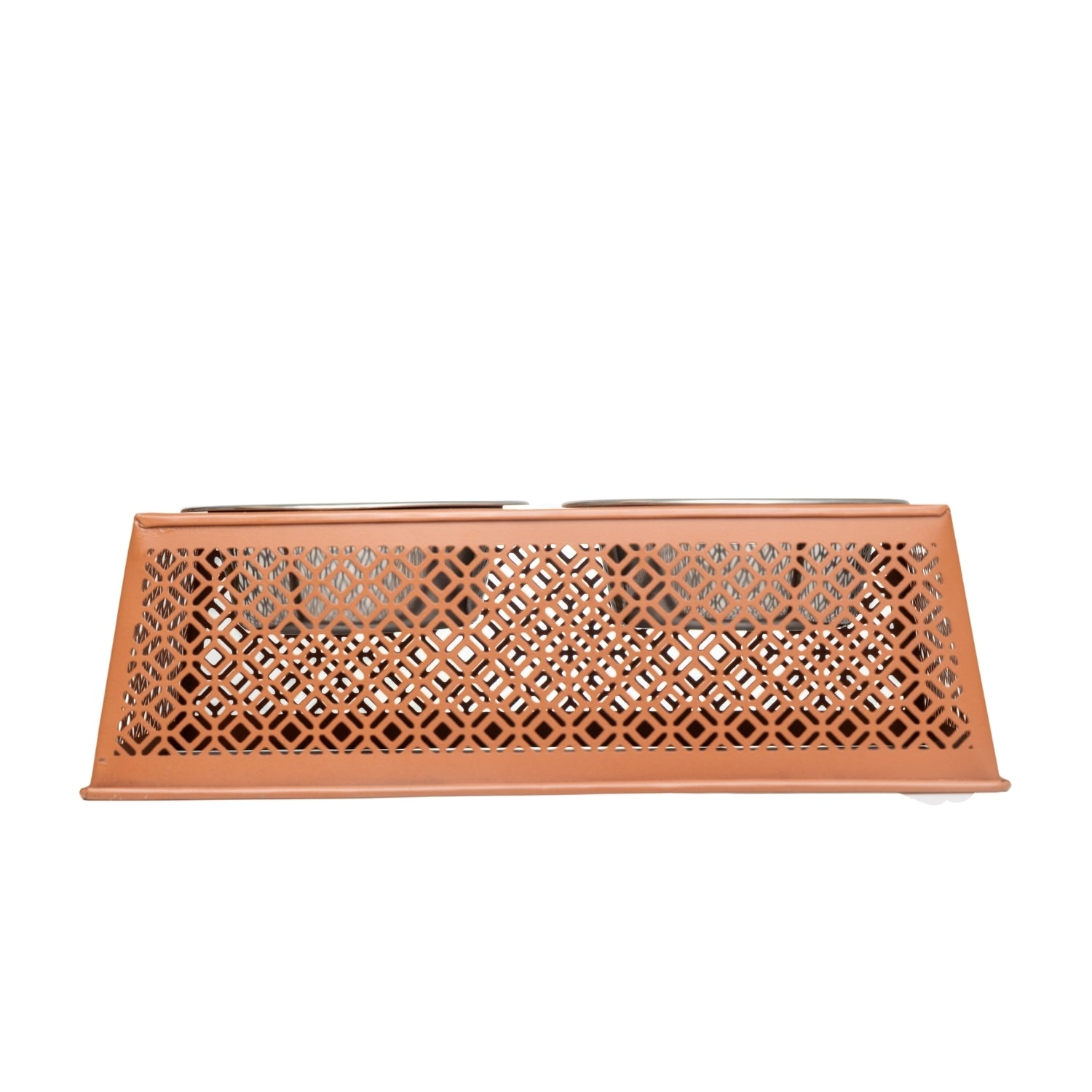 Equipped with two 16oz stainless steel bowls in a warm apricot brandy finish, it provides ample space for both food and water, ensuring a convenient and organized feeding experience. Crafted from durable and high-quality materials, this feeder is built for longevity while aligning with mindful values.