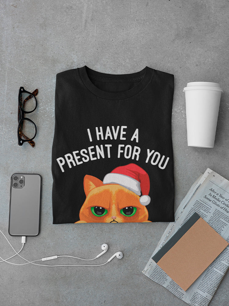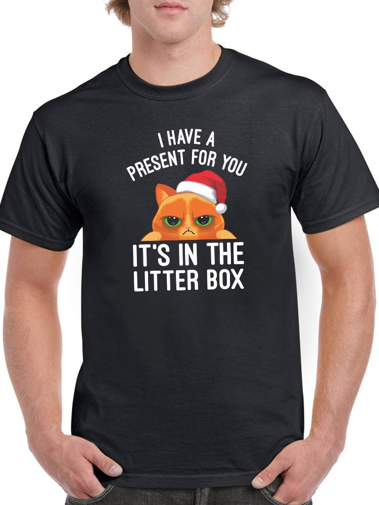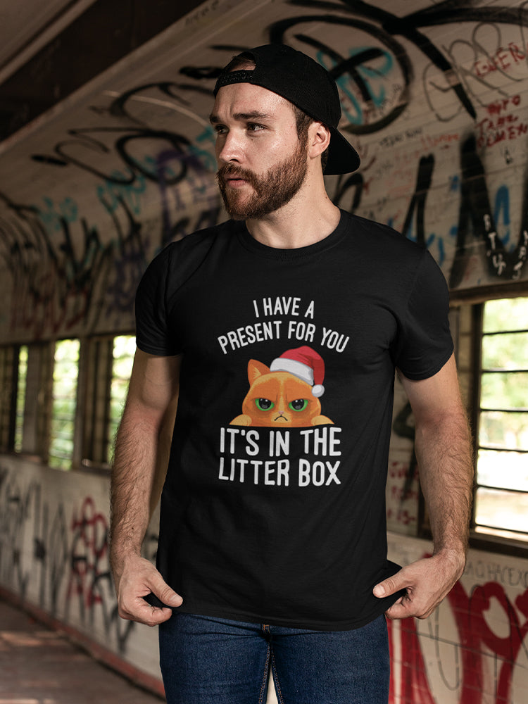 This cat has something for you, and it doesn't smell nice, this funny garment is perfect for the holidays! Men's Black T-shirt. Design by Smartprints.