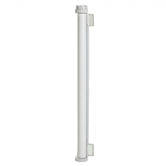 Specifications: Color: White Material: Aluminum fabric ABS Overall dimension: 55" x 33"(W x H) Dimension of mesh (Fully Expanded): 52" x 31.5" (W x H) Net weight: 4 lbs Applicable age: 6- 24 Months old Box Qty: 1(May vary by batch)Package includes: 1 x Retractable baby gate 1 x Instruction