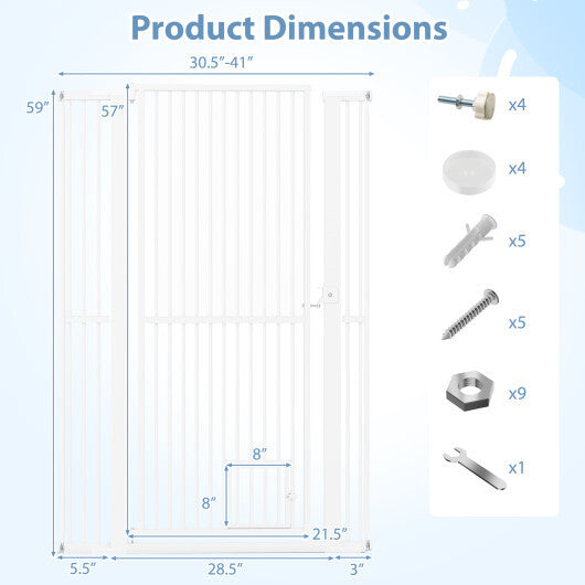 59" Extra Tall Pet Gate Heavy-Duty Metal Cat Gate with Wide Opening-White - Color: White