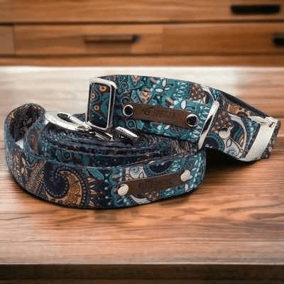 Elevate your pup's style with the Dapper Doggo Delightful Collar Set, a fashionable and durable accessory that lets your dog's personality shine through. Handmade with unique fabrics and custom engraving option, this collar is perfect for trendsetting fur babies. Give your pet the stylish collar they deserve!