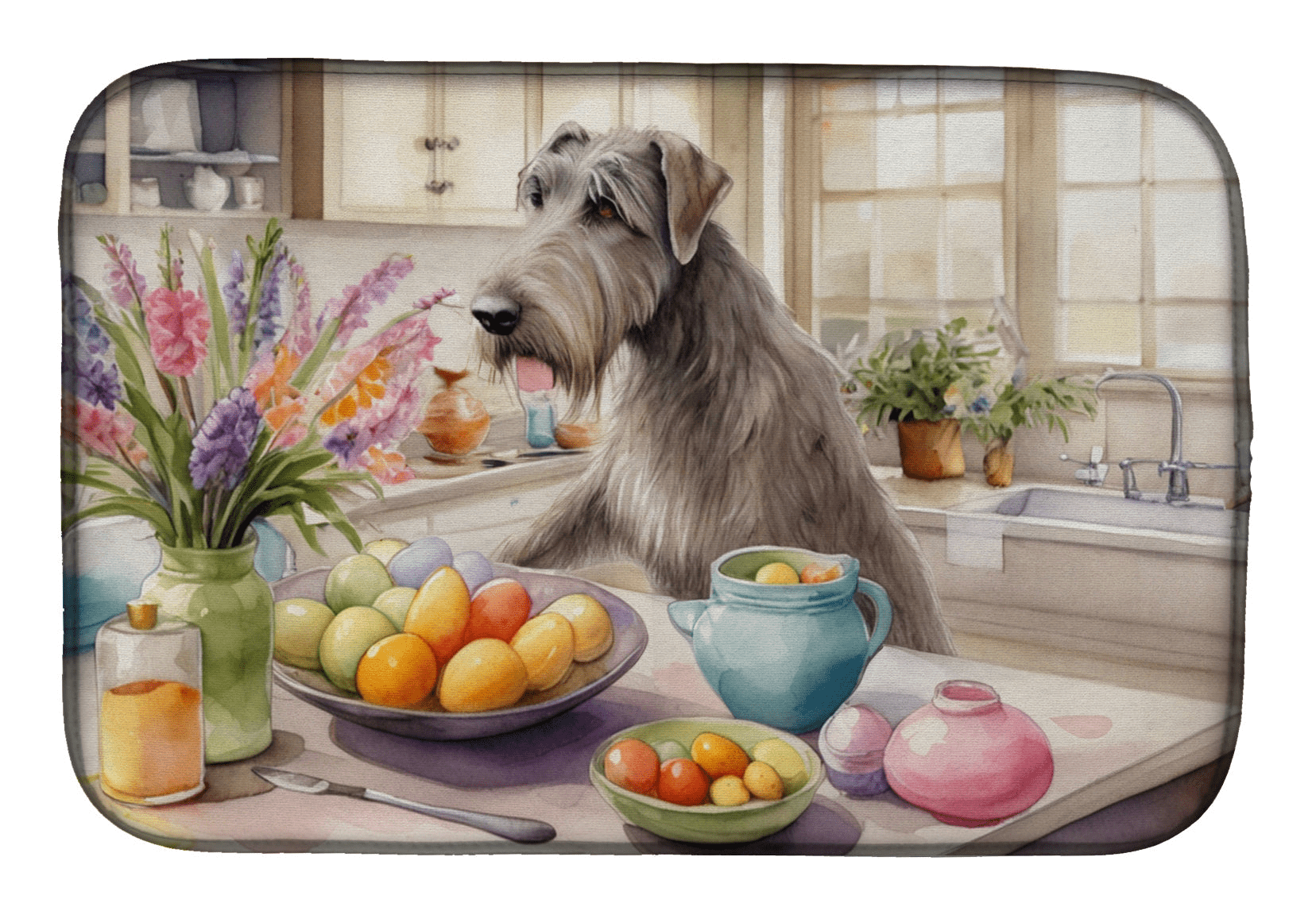 Decorating Easter Irish Wolfhound Dish Drying Mat