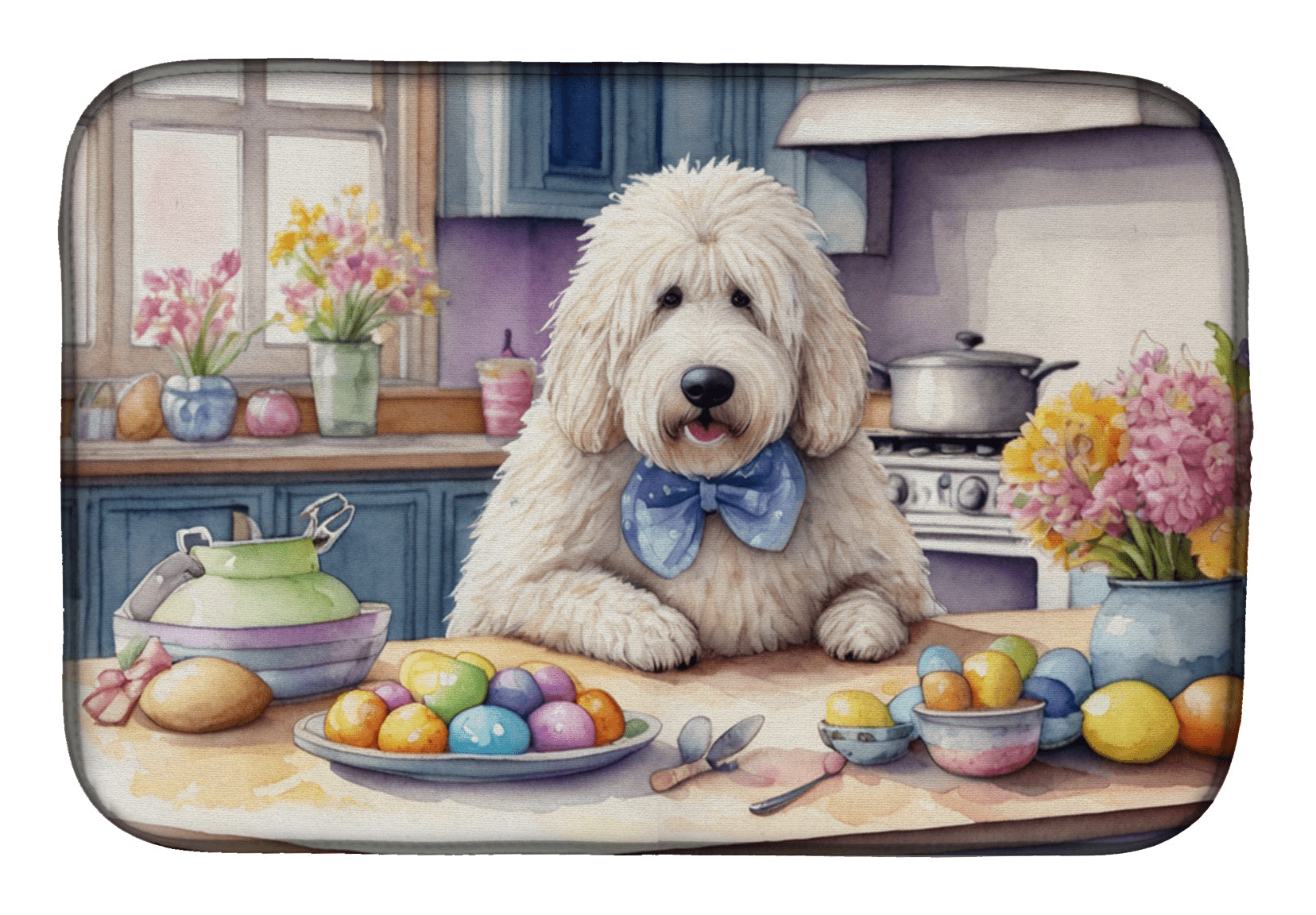 Embrace springtime charm in your kitchen with our Decorating Easter Komondor Dish Drying Mat. This absorbent mat keeps countertops dry while adding breed-inspired whimsy to your daily routine. Your dishes and fruits dry comfortably on a non-slip, machine-washable surface, making it ideal for pet parents who want style + comfort.