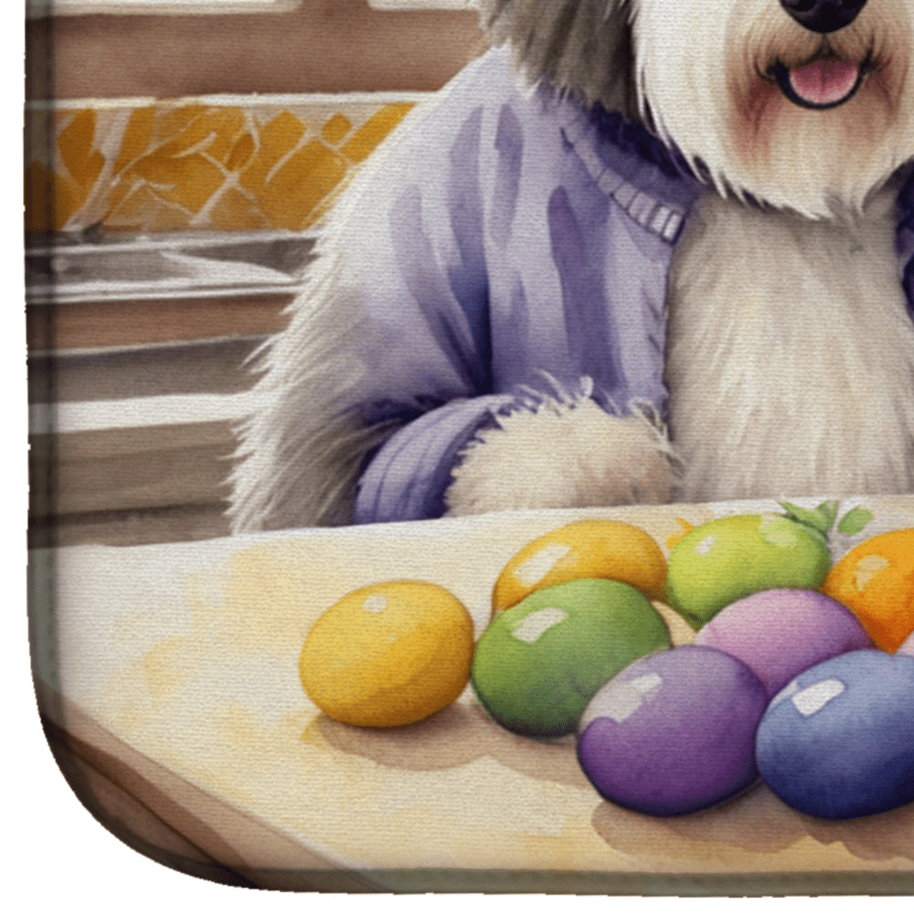Decorating Easter Old English Sheepdog Dish Drying Mat