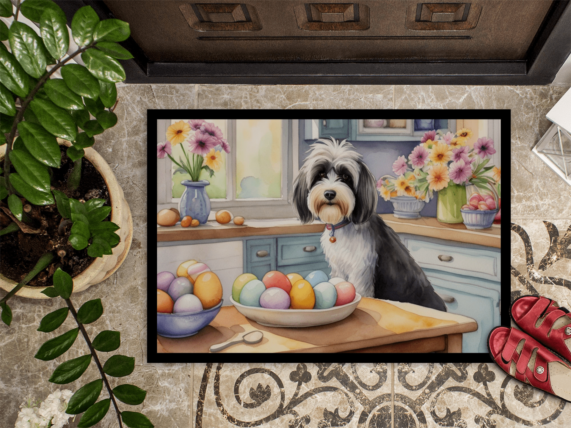 Decorating Easter Tibetan Terrier Doormat