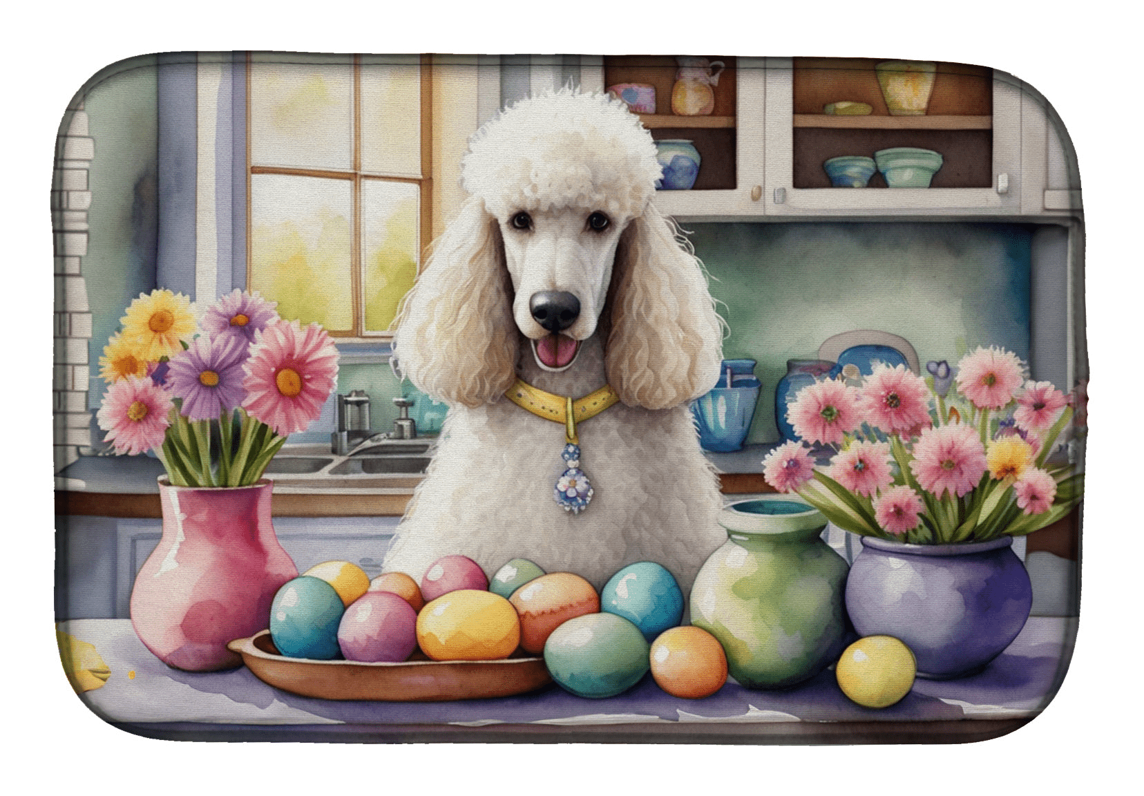 Decorating Easter White Poodle Dish Drying Mat