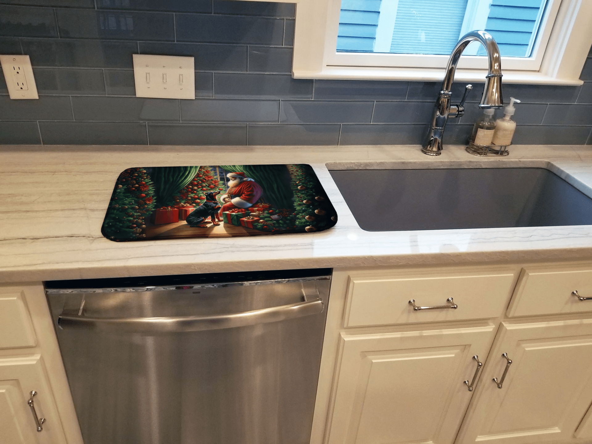 Doberman Pinscher and Santa Claus Dish Drying Mat