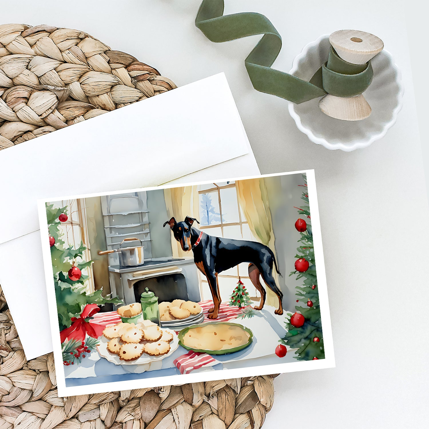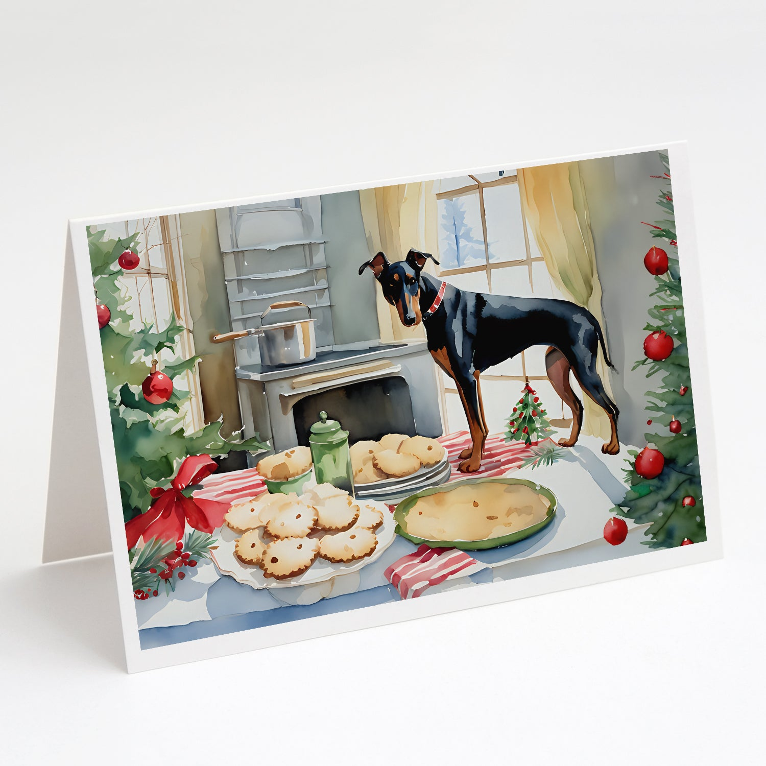 Greeting Cards Pack of 8 featuring breed specific Doberman Pinscher artwork. Celebrate Christmas with this Christmas . Celebrate special moments with Caroline's Treasures Printed Greeting Card Pack. This pack includes eight beautifully folded 5x7 cards, accompanied by eight matching white envelopes. With blank interiors, these cards provide ample space for your personalized messages and heartfelt holiday greetings. Each card features captivating full-color artwork, meticulously printed in our facility on high-quality 80 lb cover stock or 216 GSM. The super smooth finish of the white cards enhances the visual impact of the artwork, creating a truly stunning presentation. Designed by our talented in-house artists or licensed artists, the artwork on these cards showcases their creativity and attention to detail. From vibrant illustrations to captivating designs, each card tells its own unique story. Whether it's for birthdays, anniversaries, holidays, or any special occasion, Caroline's Treasures Greeting Card Pack is the perfect way to convey your heartfelt sentiments. Share joy, love, and warm wishes with these exquisite cards and make every moment unforgettable.