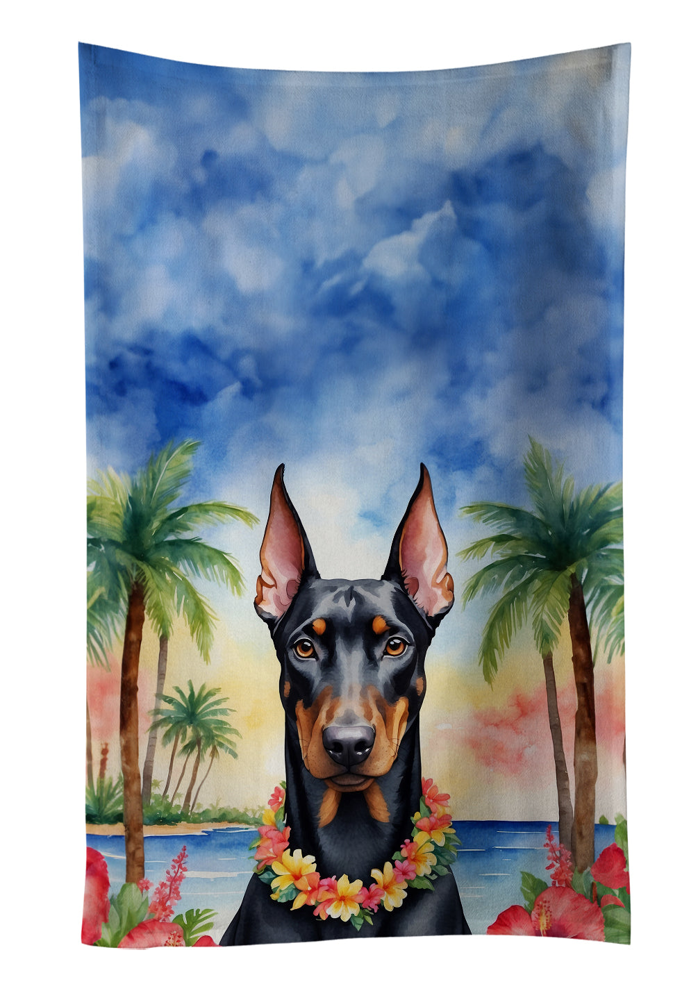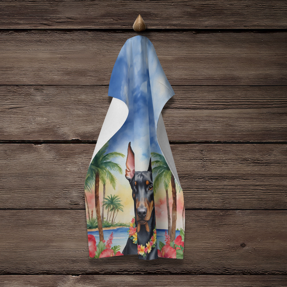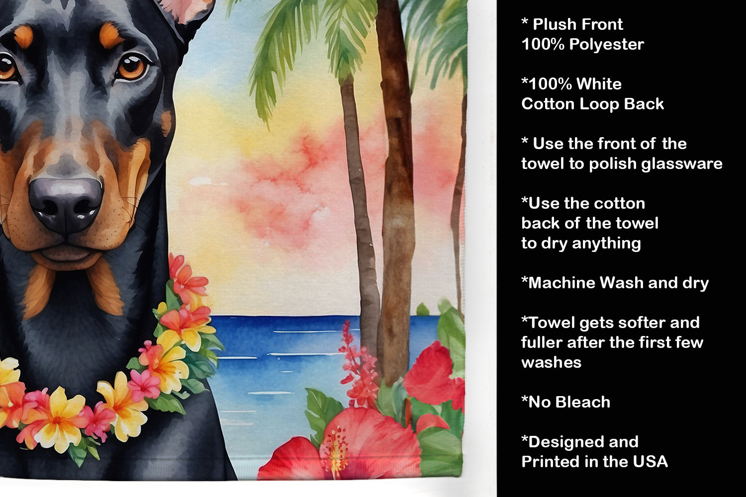 Kitchen Towel featuring breed specific Doberman Pinscher artwork. Experience the perfect blend of aesthetic appeal and functional excellence with our Plush Velour Kitchen Towels. These are not your ordinary decorative kitchen towels that gather dust. Instead, they are designed to be as practical as they are stylish. The front layer of our towel is constructed from a minky plush polyester, known for its durability and color retention. Unlike conventional kitchen towels, the artwork on our towels is dyed directly into the fabric, ensuring vibrant colors that last. Polish your glassware to a brilliant sparkle using the plush front side of the towel. Flip to the back, crafted from 100% cotton terry loop, to exploit its exceptional absorbency for drying dishes or wiping down counters. Our kitchen towels redefine the concept of functional art, offering lasting quality that maintains the towel's shape over time. Measuring 15 inches by 25 inches and weighing 2.3 lbs per dozen, these towels deliver an overwhelming sensory experience with their soft, plush, and smooth texture. The edges are meticulously finished with binding, enhancing their durability and visual appeal. For your convenience, these towels are machine washable and can be dried on low heat. After the first wash, the top fabric becomes even softer and fluffier, eliminating the need for ironing. Treat your kitchen to the luxury and functionality it deserves with our plush velour kitchen towels.