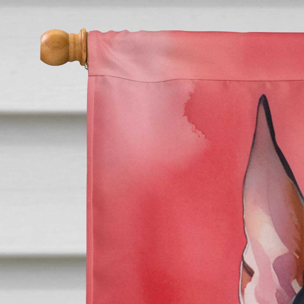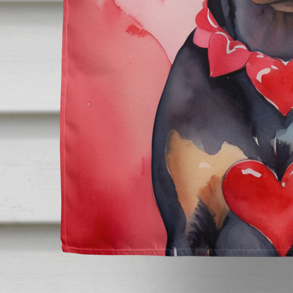 House Flag featuring breed specific Doberman Pinscher artwork. Celebrate Valentine's Day with this Valentine's Day Large Flag. Presenting our Heavy Duty Polyester House Size Decorative Sleeve Pole Flag, a vibrant addition to enhance the aesthetic appeal of your home. This large decorative flag, measuring approximately 28 x 40 inches, offers ample coverage and visibility. Each flag is meticulously sewn and made individually, ensuring a unique piece that may slightly vary in size. It's a sleeve pole flag, designed to fit a standard decorative flag pole effortlessly. Please note that the flag pole and bracket are not included and should be purchased separately. What sets our flag apart is its dual-sided print. The design is mirrored on both sides of the fabric, allowing for uniform visibility regardless of the angle. Printed in full color, our flag showcases vibrant hues that truly stand out. To ensure lasting vibrancy and durability, the dyes are heat-set into the fabric. This ensures your flag remains bright and captivating through various weather conditions. Elevate the look of your home with our Heavy Duty Polyester House Size Decorative Sleeve Pole Flag!