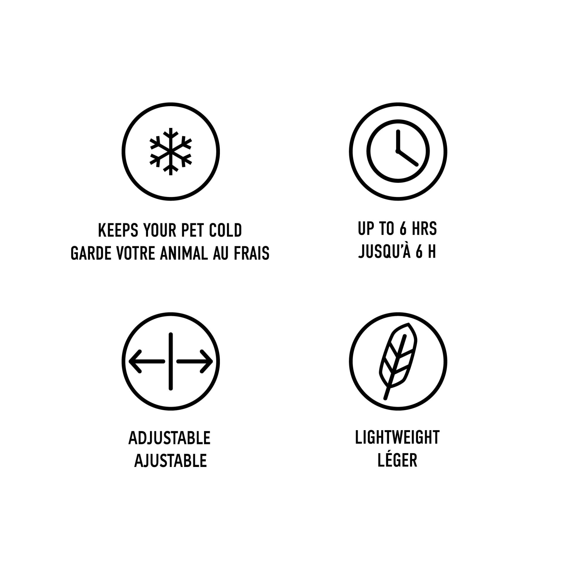 How does it work? Our COOLFRESH™ Technology uses a unique ice-cooling net embedded in an ultra-absorbing fabric to help keep your pet cool for longer periods of time compared to other fabrics without using chemicals!