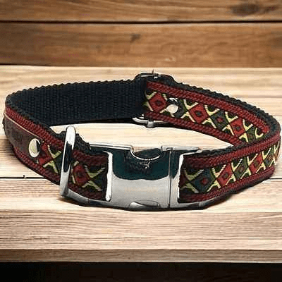 Keep your pup stylish and comfy with the Enchanted Elegance Designer Handmade Cotton Dog Collar, crafted from 100% cotton for durability and a touch of magic. Personalised engraved buckle for added charm and security. Choose from various designs to match your pet's personality. Stand out in the park with the unique personalised buckle.