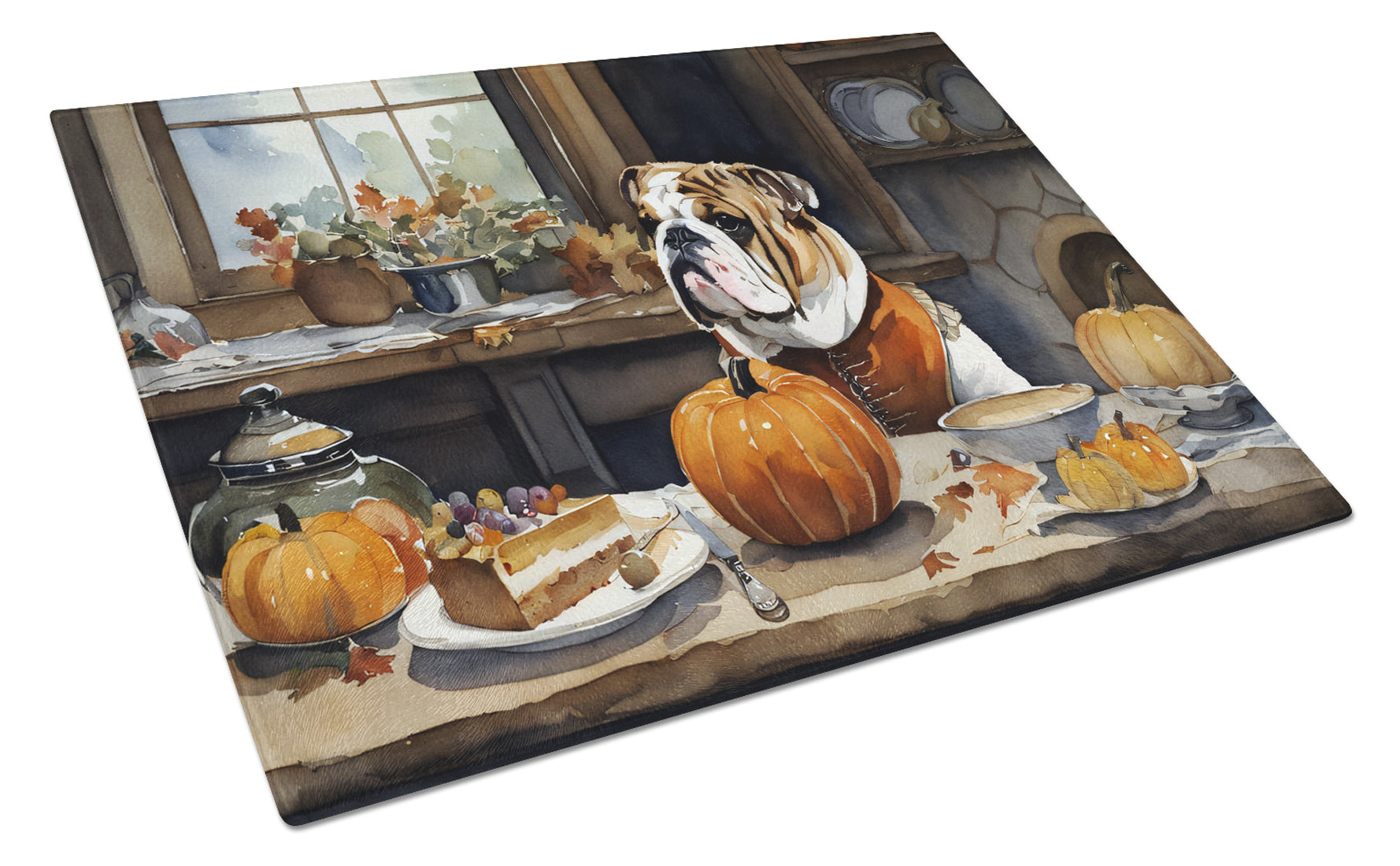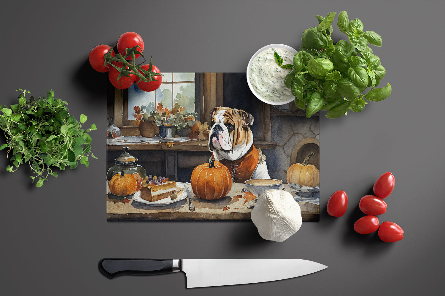 English Bulldog Fall Kitchen Pumpkins Glass Cutting Board