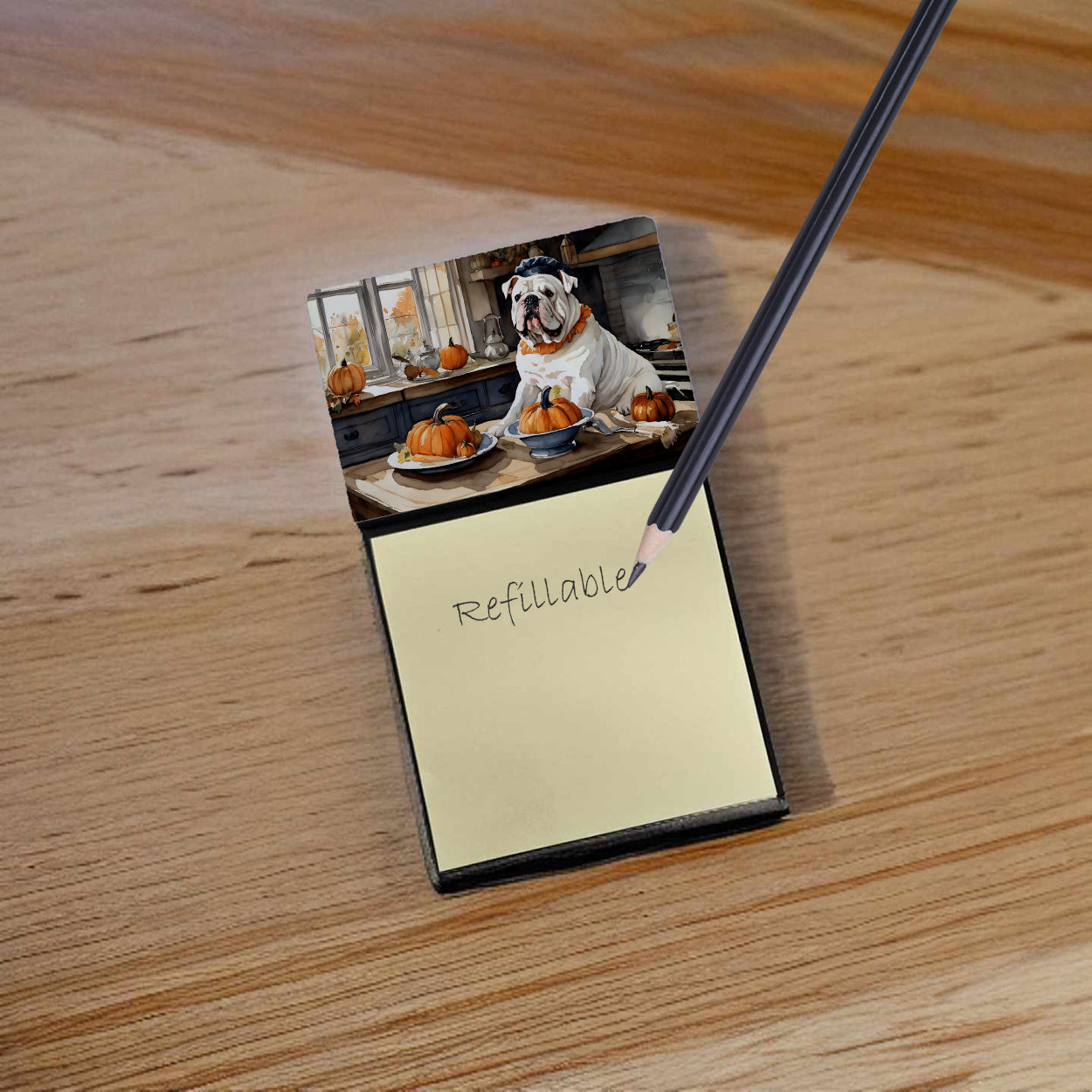 Sticky Note Holder featuring breed specific English Bulldog artwork. Celebrate Halloween with this Halloween Sticky Note Holder. Add a touch of creativity and flair to your desk with the Decorative Sticky Note Holder from Caroline's Treasures. This uniquely designed sticky note dispenser will not only keep your notes in one place but also add an artistic element to your workspace. The top of the holder features beautiful artwork that is sure to catch the eye. Crafted for convenience, this sticky note holder comes with a small pad of 3-inch x 3-inch sticky notes at the bottom. The holder is designed for easy refilling; simply remove the last sheet of a new sticky note pad and stick it onto the board. This feature ensures you will always have sticky notes at your disposal. This Sticky Note Holder makes a perfect gift. Be it for your colleagues at work, your Facebook friends, or even your dog groomer or hairdresser, this versatile product fits the bill. You can use it for making grocery lists, leaving notes for loved ones, or for jotting down important reminders. The bottom board is rigid and can be magnetized by adding a business card size magnet to the back (sold separately). This makes it even more versatile, allowing you to place it on a refrigerator or any other magnetic surface. With this Sticky Note Holder, you're not only organizing your notes, but also personalizing your space.