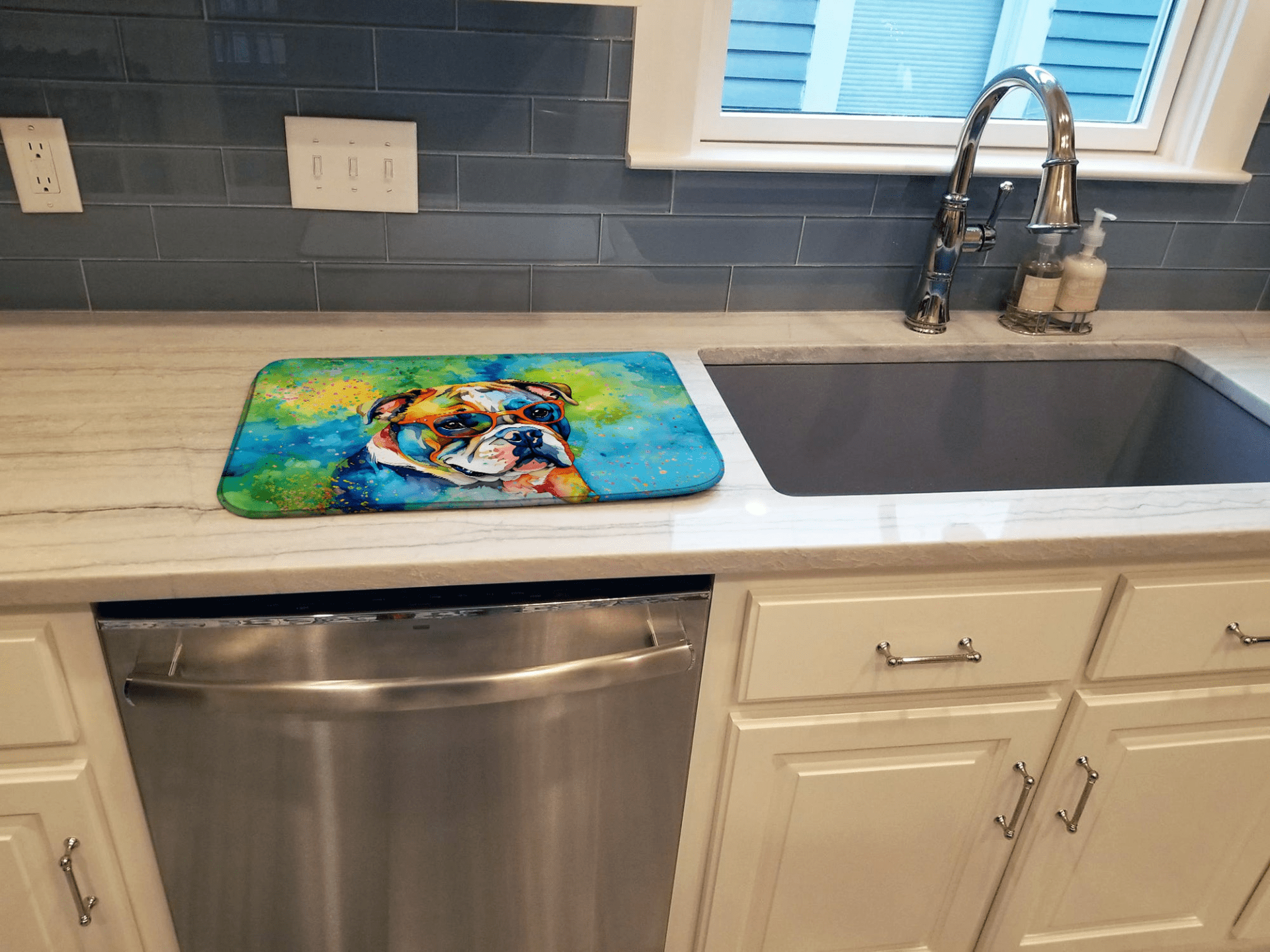 English Bulldog Hippie Dawg Dish Drying Mat