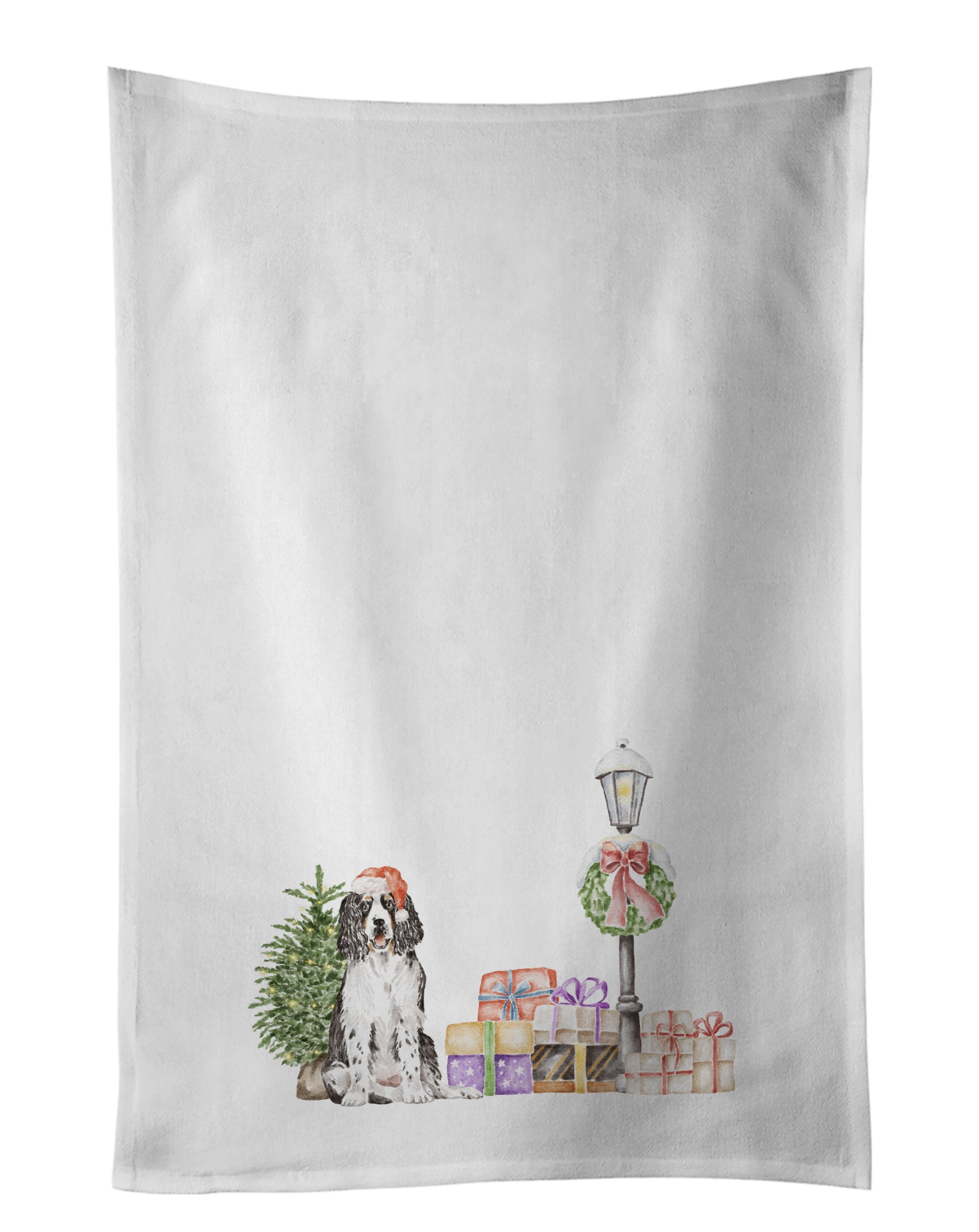 Kitchen Towel Set of 2 featuring breed specific English Springer Spaniel artwork. Celebrate Christmas with this Christmas Kitchen Cotton Towels. This Kitchen Towel Set of 2 is from Caroline's Treasures collection Christmas Wonderland. Spruce up your kitchen decor with Caroline's Treasures Decorative White Kitchen Towel Set. This set of two dish towels showcases beautiful artwork from one of our talented artists, making them both practical and visually appealing. These towels are crafted from 100% cotton, offering excellent absorbency and durability, making them ideal for any kitchen task. Each white towel measures 19 inches by 28 inches, providing ample coverage for drying dishes or wiping up spills. The standout feature of these towels is the full-color artwork design printed on each one. They can serve as a vibrant accent in your kitchen, turning a functional item into a delightful piece of decor. When it comes to care, these towels are machine washable in cold water and can be dried on low heat. Remember to always use a pressing cloth when pressing the design, and avoid using bleach on the decorated towel. The Decorative White Kitchen Towel Set makes a great gift or a stylish addition to your own kitchen. This Kitchen Cotton Towels is from Caroline's Treasures Dogs category of products.