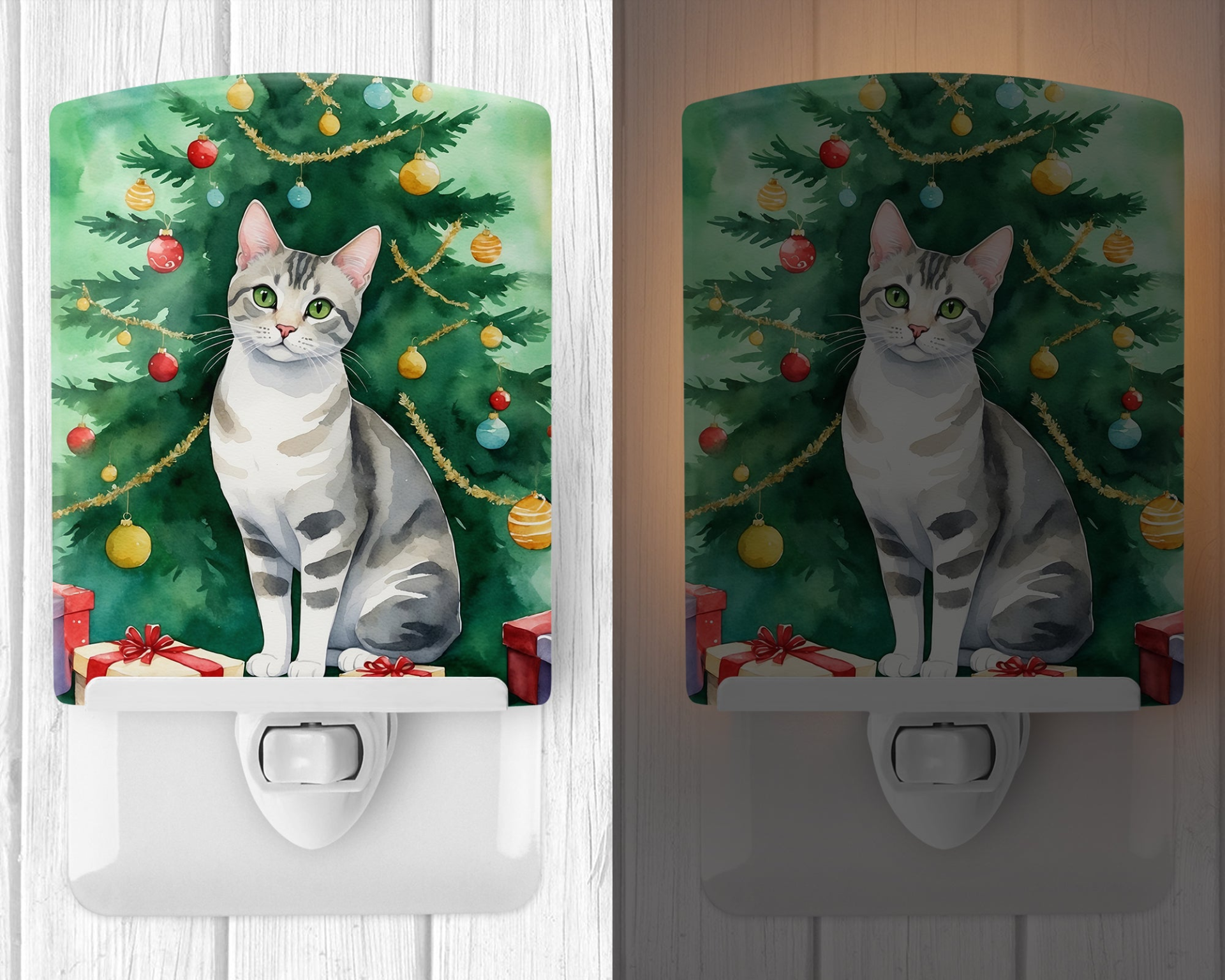 European Shorthair Cat By the Christmas Tree Ceramic Night Light