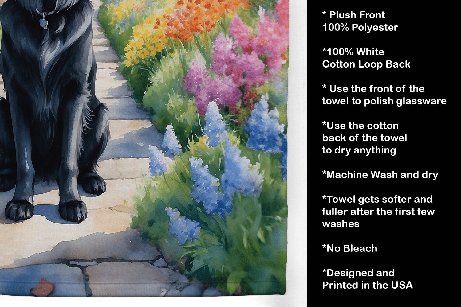 Designed for dog lovers who crave beauty and practicality, the Flat-Coated Retriever Spring Path Kitchen Towel brings a touch of canine-inspired luxury to everyday tasks. The plush minky front feels indulgent in your hands and showcases breed artwork dyed directly into the fabric for vibrant, lasting color. Flip it over to the 100% cotton terry back for exceptional absorbency on dishes and counters, while the bound edges ensure lasting shape. This towel is machine washable and designed to become softer after the first wash—perfect for daily kitchens where style meets convenience.