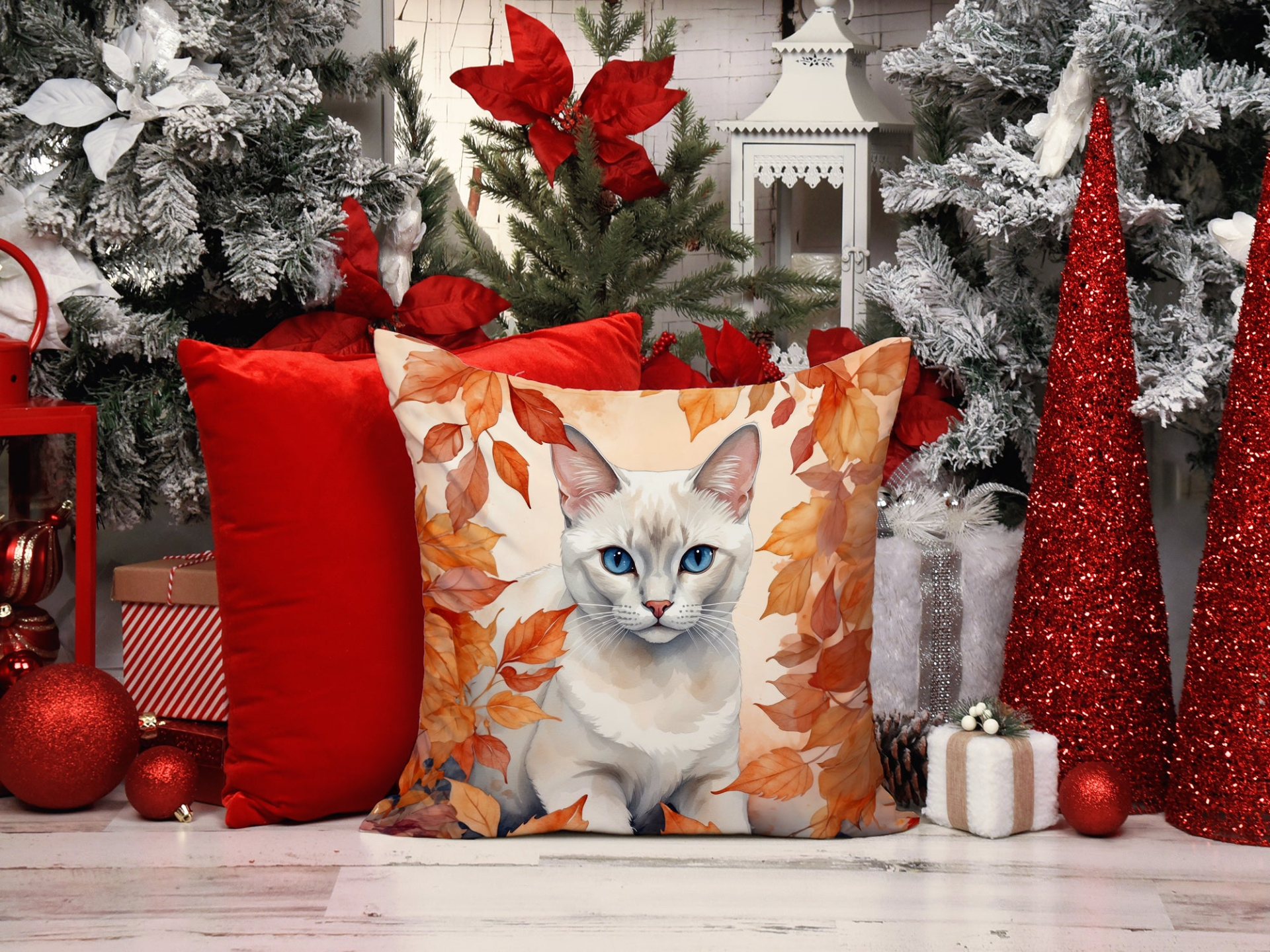 Throw Pillow featuring breed specific Foreign White Cat artwork. Celebrate Halloween with this Halloween Pillow. Add a touch of vibrancy and comfort to your outdoor seating with Caroline's Treasures Fabric Decorative Pillow. Measuring approximately 14 inches by 14 inches, this outdoor pillow is crafted to elevate the appeal of your patio furniture, infusing it with vivid color and artistic flair. The pillow includes a 100% Polyester Fabric sham filled with a quality pillow form to provide superior comfort. Innovatively made from our brand new material, specifically woven for its water resistance, this pillow is designed for durability. The soft canvas fabric offers versatility in use, fit for your indoor couch or your outdoor patio, porch, or veranda. The fabric is dyed with colorfast dyes built for resilience against weather conditions, ensuring the pillow retains its beauty over time. Constructed by sewing three fabric pieces to create a sham, the polyester insert is then nestled inside to form the pillow, resulting in an overstuffed pillow that maintains its shape. Both the sham and the pillow insert are proudly made in the United States. As the pillows are handcrafted, there may be minor variations in size, further enhancing their unique charm. Experience comfort in style with Caroline's Treasures Fabric Decorative Pillow.