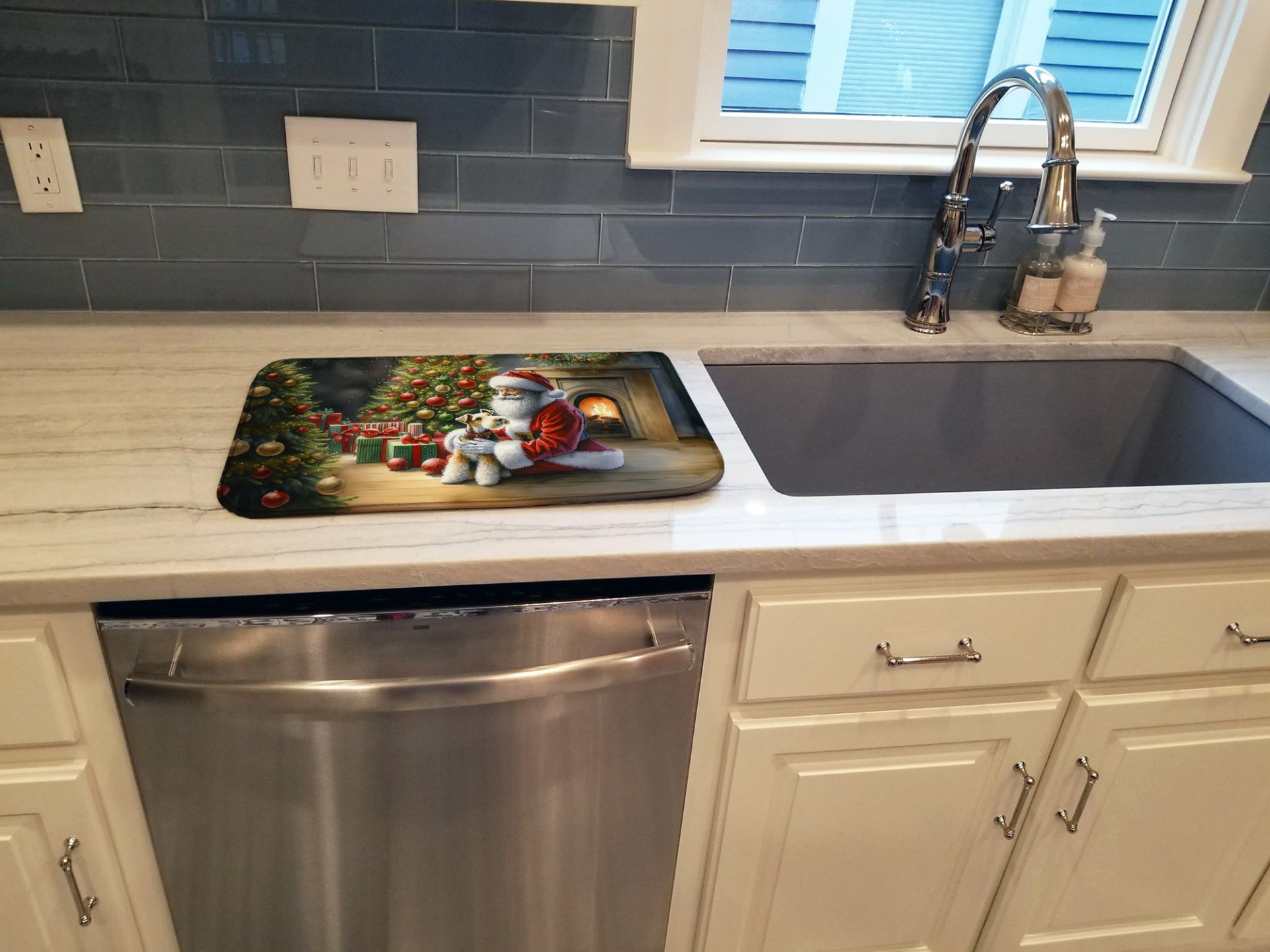 Dish Drying Mat featuring breed specific Fox Terrier artwork. Celebrate Christmas with this Christmas Dish Drying Mat. Say goodbye to messy countertops and soggy dish towels with our innovative dish drying mat. Our high-quality dish drying pad is designed to keep your countertops dry while offering a stylish and efficient solution. Whether you're air drying dishes, glasses, stemware, silverware, pots, pans, bottles, or even fruits and vegetables, our dish mat is the perfect choice. The 14 inches x 22 inches size fits most counters and dish drying racks, and the non-slip design ensures stability. Made with water-absorbent polyester and a polyurethane foam insert, our dish drying mat is not only functional but also durable. It's machine washable and printed in the USA for long-lasting use. The beautiful artwork adds flair to your kitchen decor, making it a perfect housewarming gift or present for any occasion. Upgrade your kitchen experience with our absorbent and versatile dish drying mat.