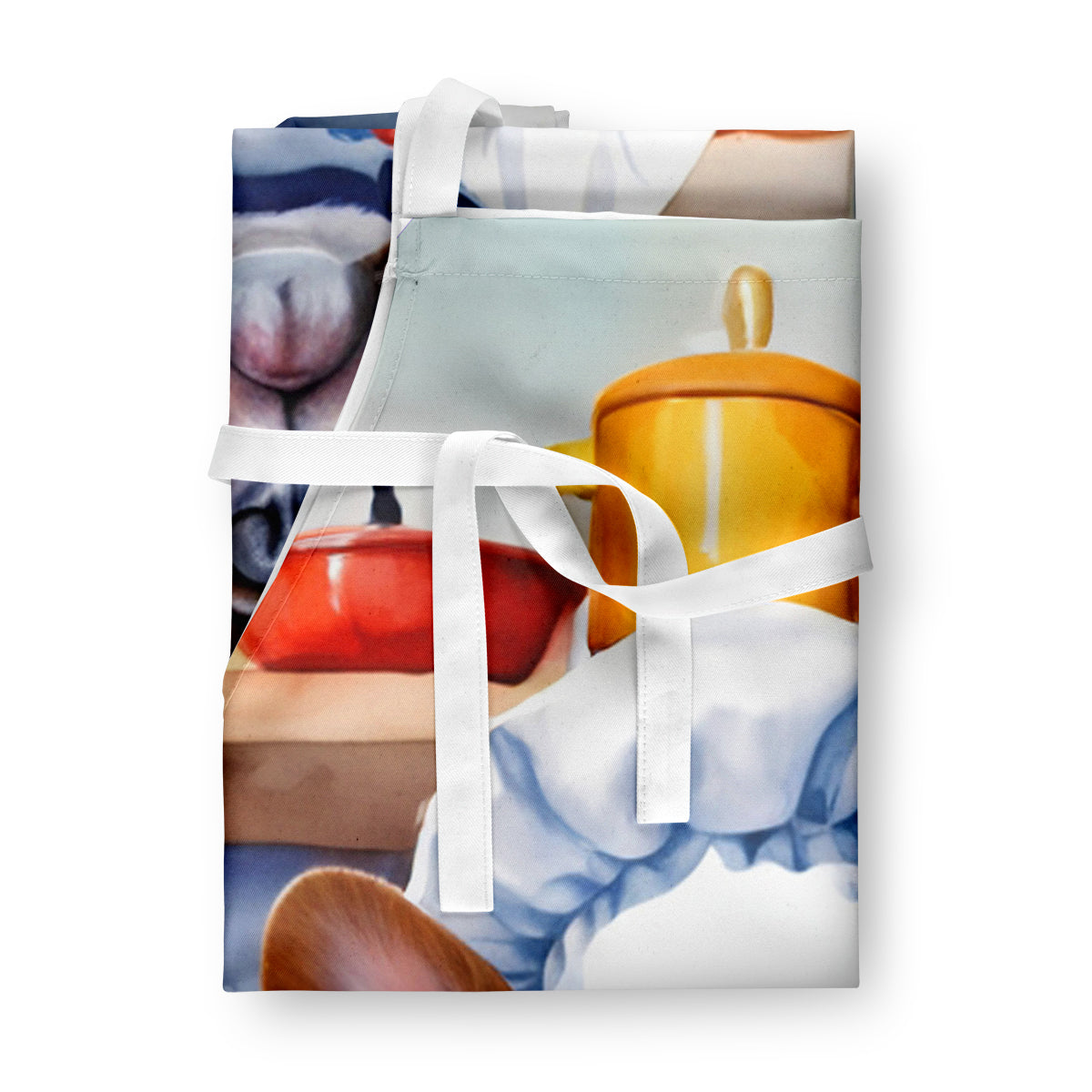 Apron featuring breed specific French Bulldog artwork. Elevate your cooking, baking, and grilling experiences with our versatile Kitchen or BBQ Apron. This Bib Style apron isn't just limited to culinary activities - it also serves as an excellent baking apron, artist apron, server apron, gardening apron, or even a dog grooming apron. The apron showcases vibrant full-color artwork contributed by one of our talented artists, bringing a dash of style to your daily tasks. With dimensions of approximately 27"W x 30"H, it provides ample coverage to protect your clothing from spills and splashes. Our apron is meticulously crafted from 100% Ultra Spun Polyester, known for its durability and lightweight nature. The apron comes with white tie straps, ensuring a comfortable and adjustable fit for all. It's a perfect choice for kitchen apron enthusiasts, whether you are a woman or a man. Designed for easy maintenance, this apron is fully machine washable. The quick-drying polyester material actively reduces staining, keeping your apron looking fresh and new for longer. Our beautifully designed apron isn't just a functional kitchen accessory - it's a fashion statement in the culinary world!