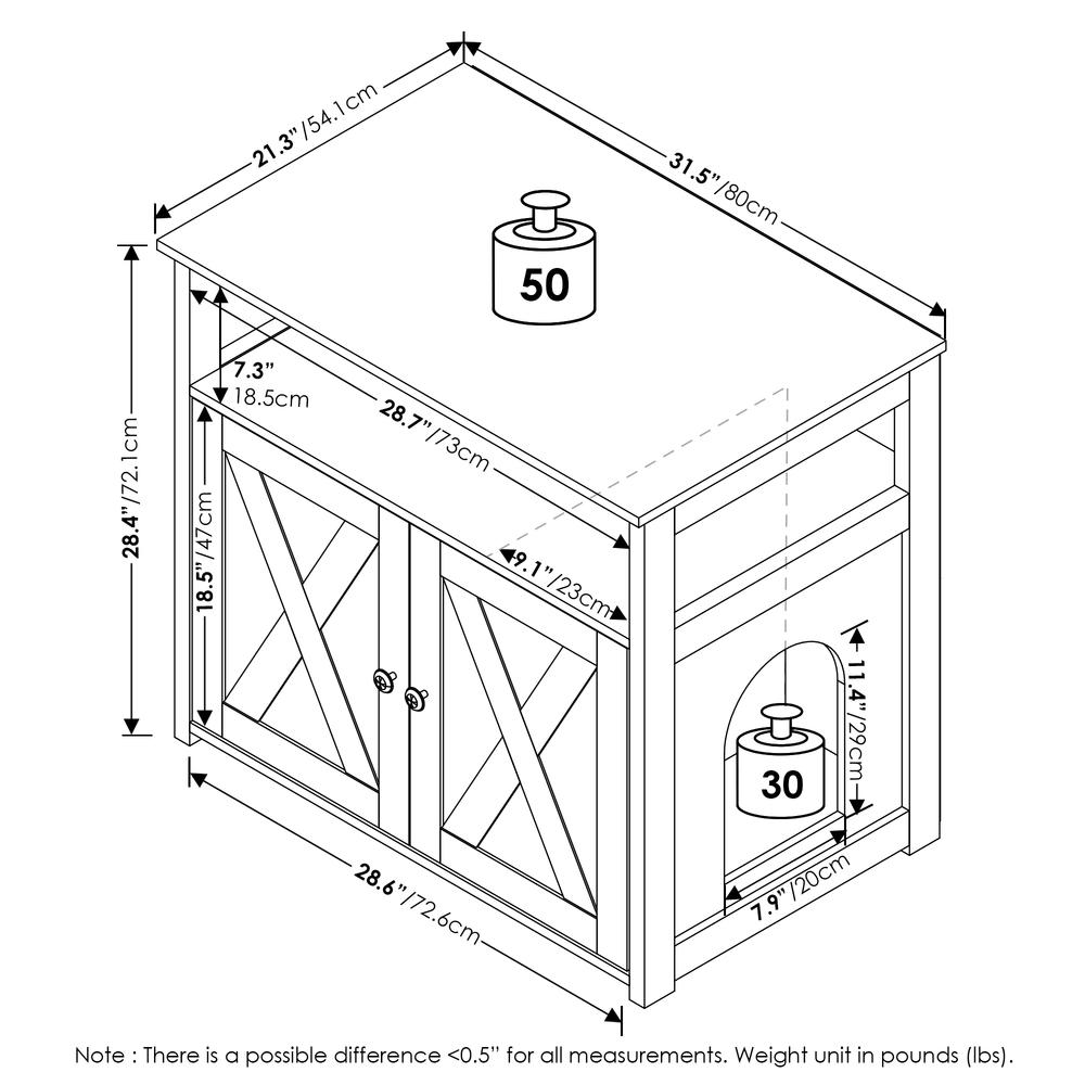 The Furinno Peli Farmhouse Cat Litter Cabinet Storage with 2 Doors in Rustic Brown is the perfect combination of style and functionality. With its farmhouse-inspired design and spacious interior, this cabinet provides a discreet solution for storing your cat's litter box. The two-door design allows for easy access while concealing the litter box from view, keeping your living space clean and tidy. The Cat Litter Box is made of CARB-grade composite wood tested for durability and sturdiness. Assembly is easy with provided step-by-step instructions. Care instructions: wipe clean with a clean damped cloth. Avoid using harsh chemicals. Pictures are for illustration purposes. All decor items are not included in this offer. The product is entitled to a 1-year warranty against manufacturer defects. Fits Space,Fits Budget.