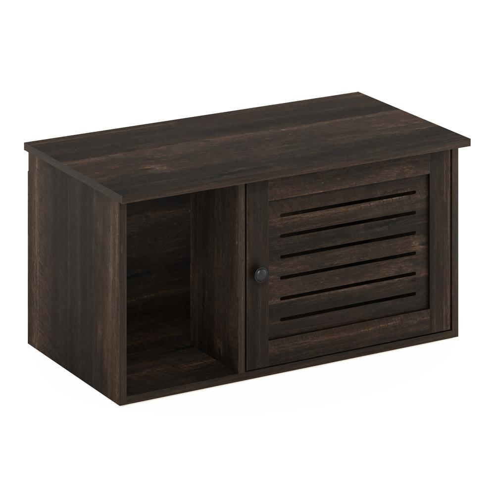 The Furinno Peli Farmhouse Hidden Cat Litter Box with Divider features a charming Ebony finish. This innovative cat litter box serves as a stylish piece of furniture that seamlessly blends with your farmhouse-inspired decor. Its hidden compartment and convenient divider enable discreet placement of your cat's litter, ensuring a clean and tidy living space while granting your feline friend the privacy they deserve. The Cat Litter Box is made of CARB-grade composite wood tested for durability and sturdiness. Assembly is easy with provided step-by-step instructions. Care instructions: wipe clean with a clean damped cloth. Avoid using harsh chemicals. Pictures are for illustration purposes. All decor items are not included in this offer. The product is entitled to a 1-year warranty against manufacturer defects. Fits Space,Fits Budget.