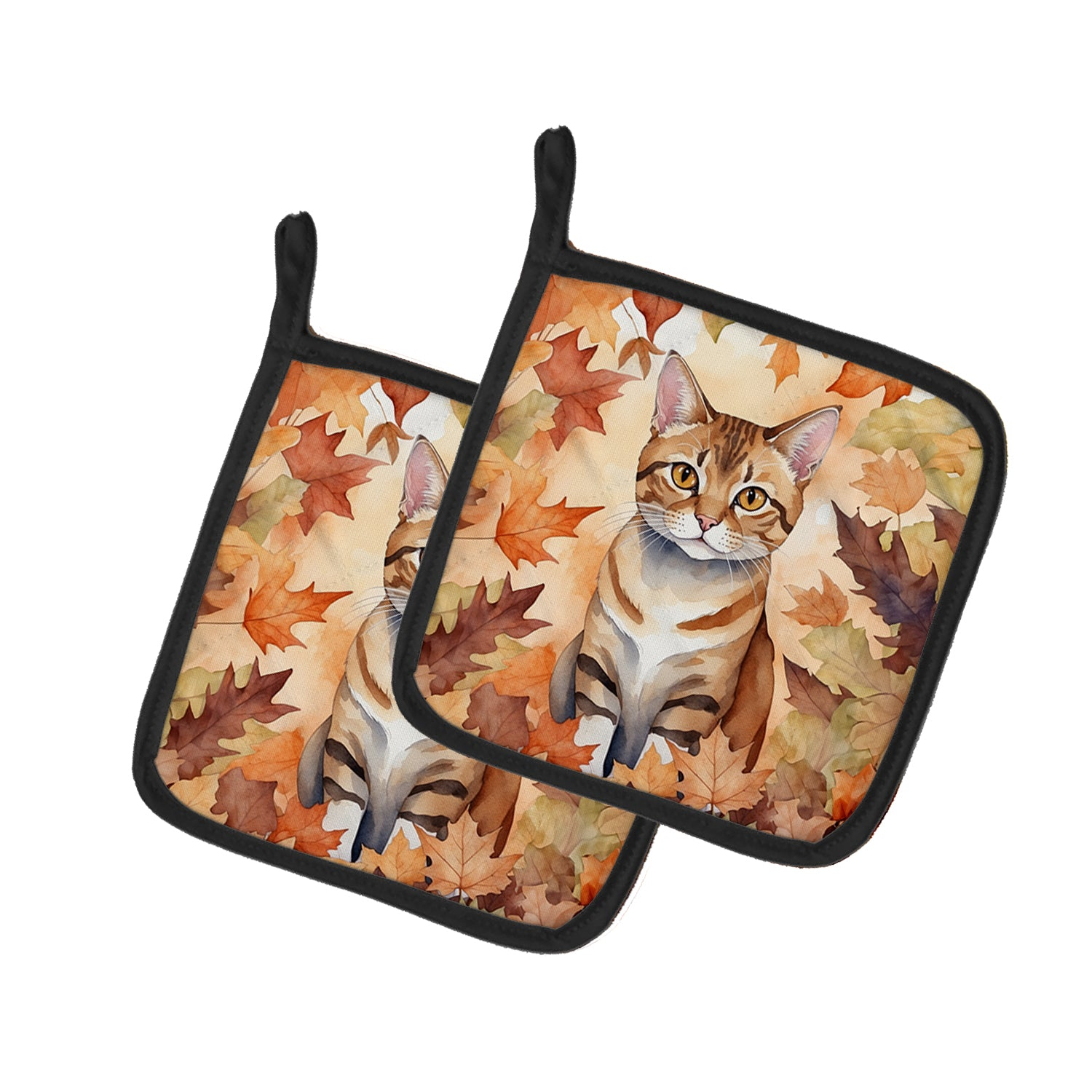 German Rex Cat in Fall Leaves Pair of Pot Holders