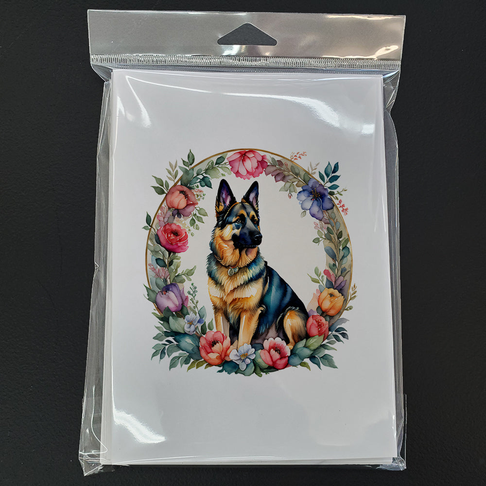 German Shepherd and Flowers Greeting Cards Pack of 8