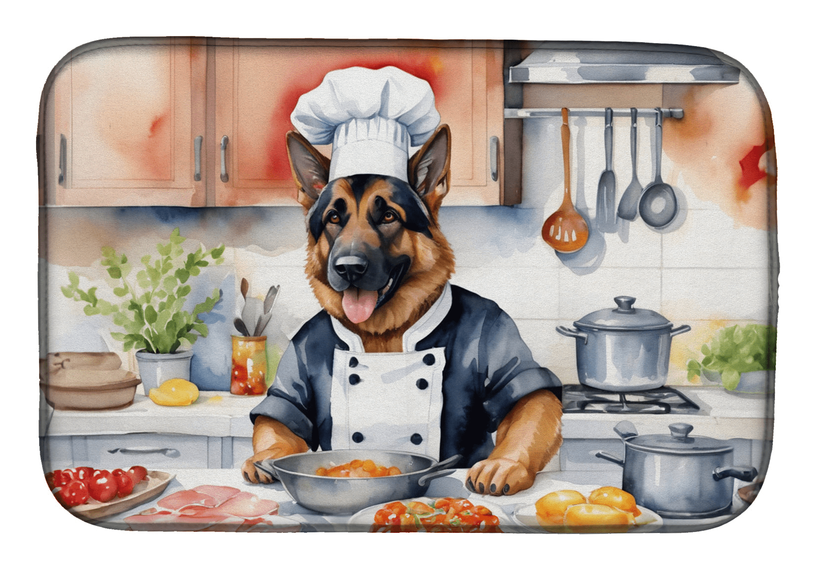 Elevate your kitchen routine with a dish drying mat that blends function with flair. Featuring a bold German Shepherd chef-inspired artwork, this mat soaks up moisture while adding canine charm to your countertops. It’s ideal for air drying dishes, glasses, stemware, and even fruits and vegetables, keeping your space neat and stylish. Perfect for pet parents who want style plus comfort in every detail.