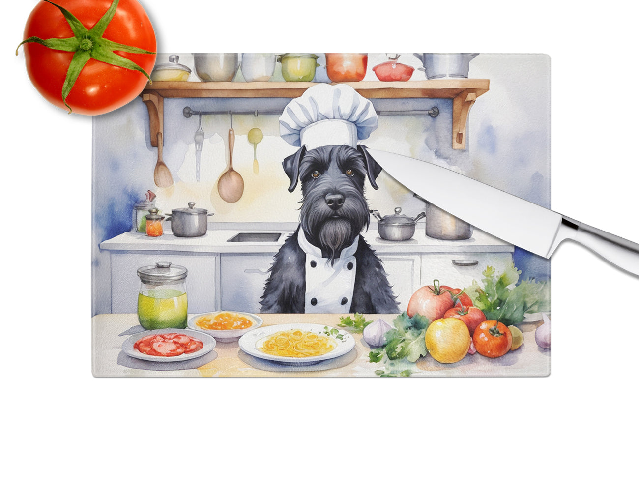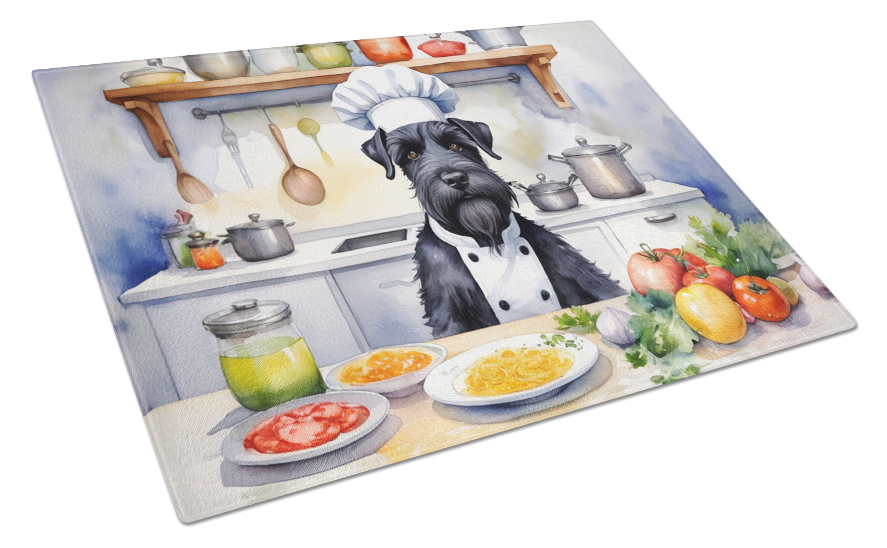 Glass Cutting Board featuring breed specific Giant Schnauzer artwork. Introduce your kitchen to the vibrant, large Decorative Glass Cutting Board from Caroline's Treasures. Crafted from resilient tempered glass, this board is not only a utilitarian necessity but also a colorful art piece. With its generous dimensions of 15 inches in height and 12 inches in length, it offers ample space for all your cutting needs. Every piece showcases captivating artwork from distinguished artists, bringing an aesthetic edge to your kitchen. Beyond its attractive design, this cutting board ensures your countertop stays pristine and unscathed, owing to its heat-resistant properties. Engineered with user convenience in mind, it features non-skid feet for stability, and rounded corners for additional safety. Its robust construction renders it virtually unbreakable, guaranteeing longevity. The board comes with protective feet bumpers, maintaining its position during use. This product is recommended to be hand washed only. Proudly printed and assembled in the United States, this cutting board exemplifies superior craftsmanship. With Caroline's Treasures' Decorative Glass Cutting Board, you're investing in a blend of functionality and artistic flair.