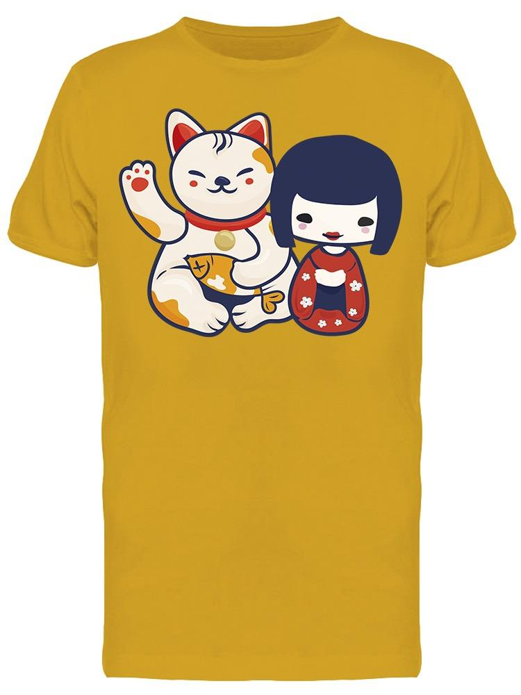 Girl And Maneki Neko Lucky Cat Tee Men's -Image by Shutterstock - L / Male / Gold is backordered and will ship as soon as it is back in stock.