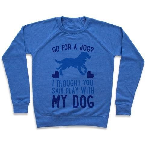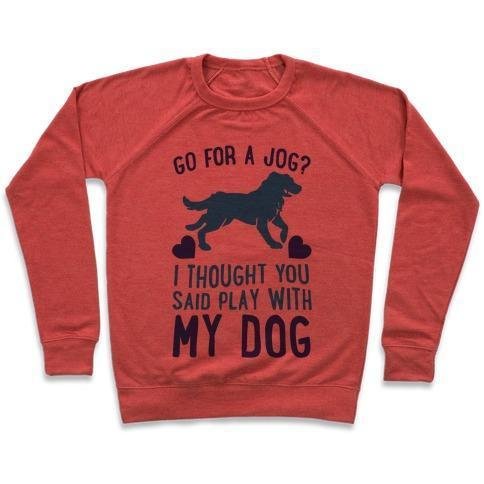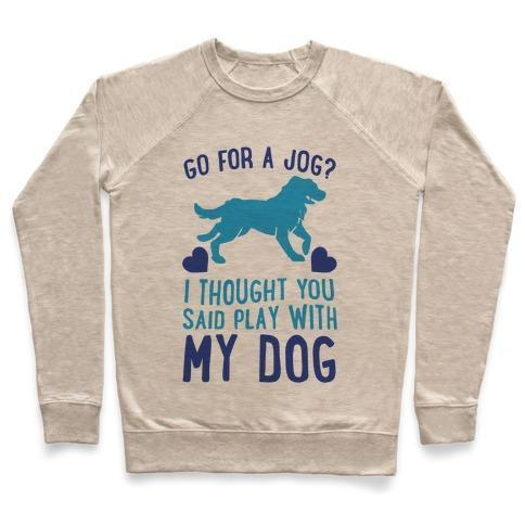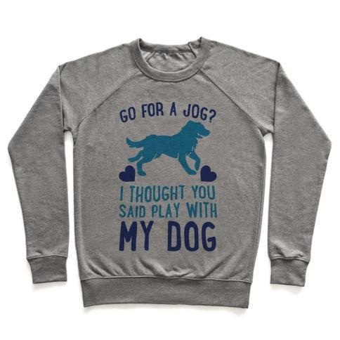 GO FOR A JOG? I THOUGHT YOU SAID PLAY WITH MY DOG CREWNECK SWEATSHIRT