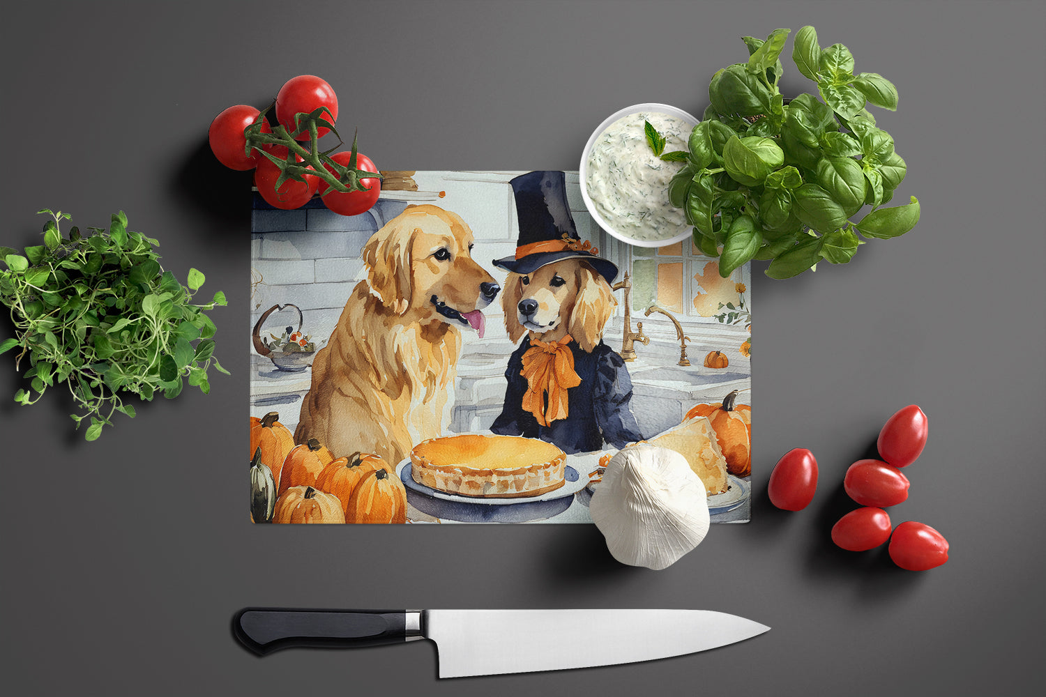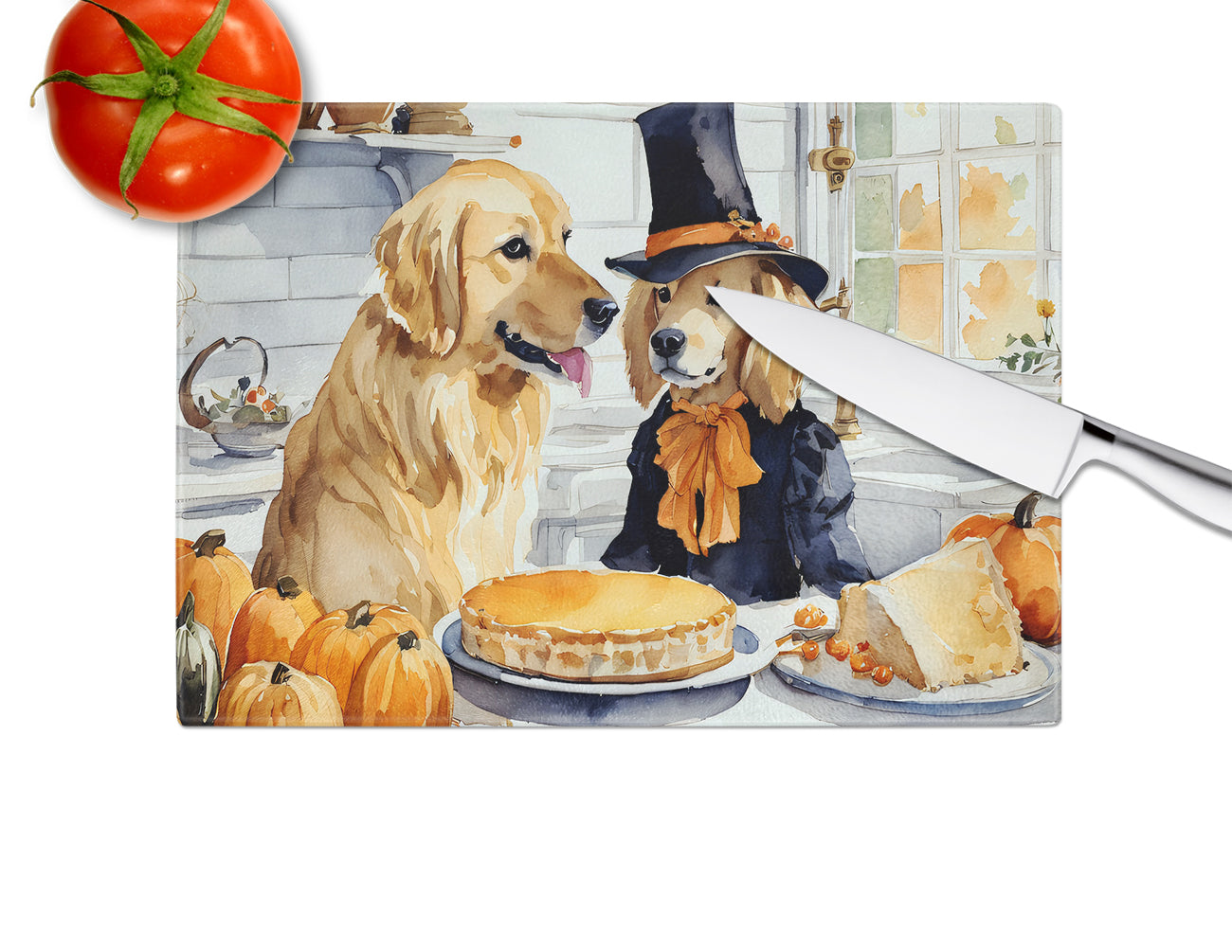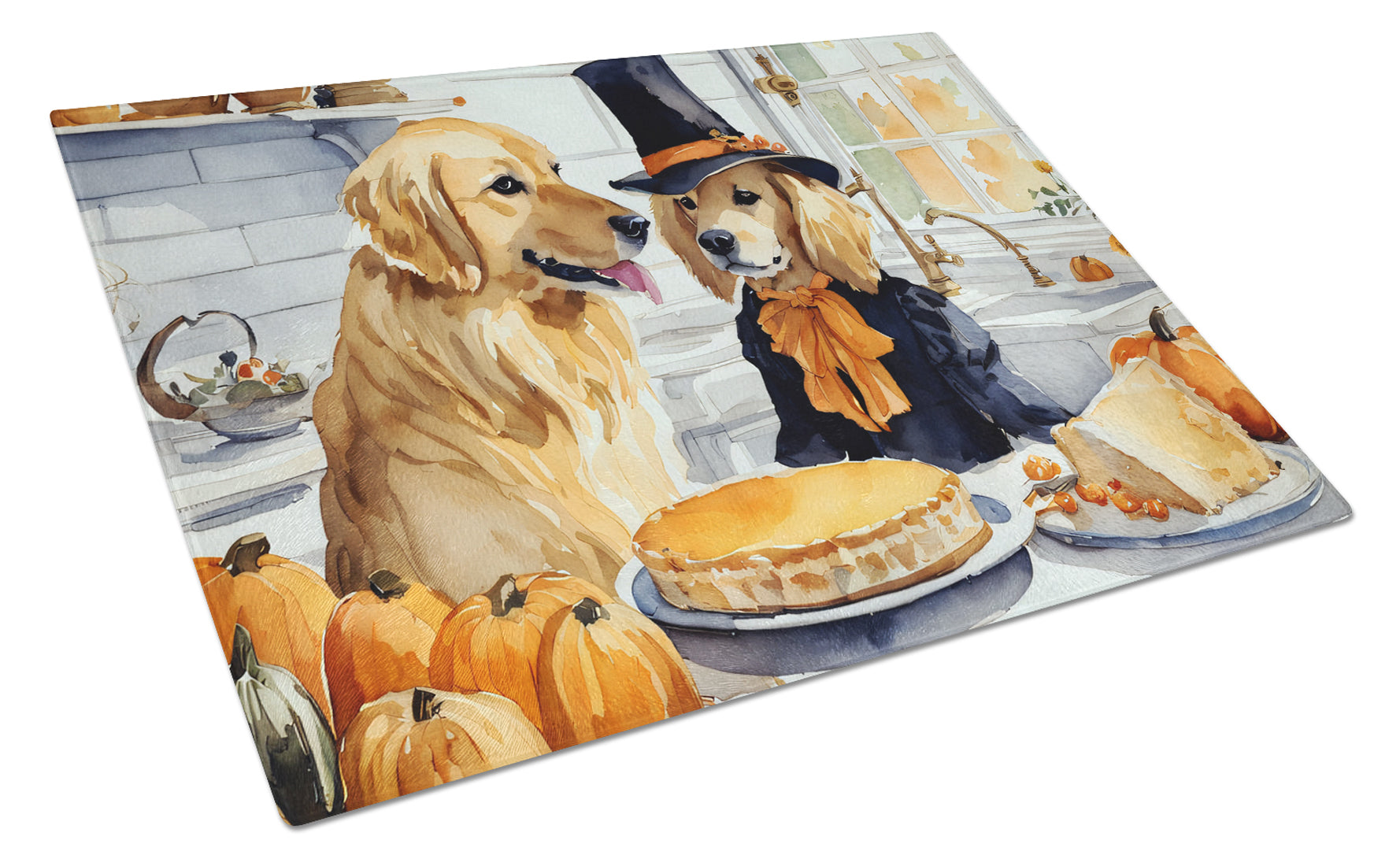 Golden Retriever Fall Kitchen Pumpkins Glass Cutting Board