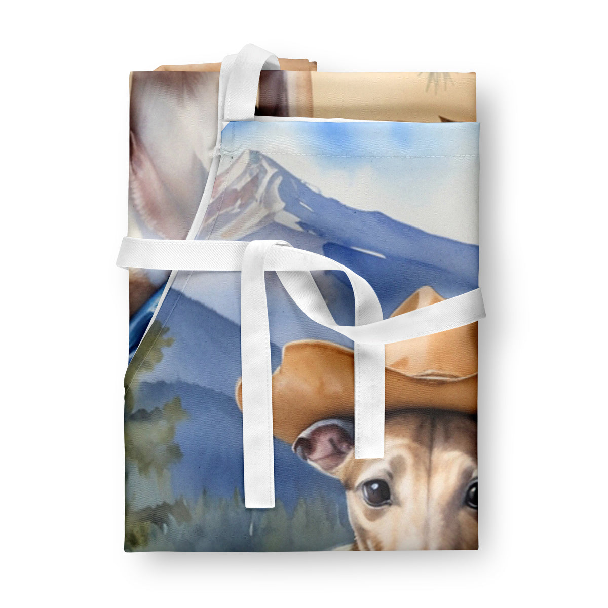 Apron featuring breed specific Greyhound artwork. Elevate your cooking, baking, and grilling experiences with our versatile Kitchen or BBQ Apron. This Bib Style apron isn't just limited to culinary activities - it also serves as an excellent baking apron, artist apron, server apron, gardening apron, or even a dog grooming apron. The apron showcases vibrant full-color artwork contributed by one of our talented artists, bringing a dash of style to your daily tasks. With dimensions of approximately 27"W x 30"H, it provides ample coverage to protect your clothing from spills and splashes. Our apron is meticulously crafted from 100% Ultra Spun Polyester, known for its durability and lightweight nature. The apron comes with white tie straps, ensuring a comfortable and adjustable fit for all. It's a perfect choice for kitchen apron enthusiasts, whether you are a woman or a man. Designed for easy maintenance, this apron is fully machine washable. The quick-drying polyester material actively reduces staining, keeping your apron looking fresh and new for longer. Our beautifully designed apron isn't just a functional kitchen accessory - it's a fashion statement in the culinary world!
