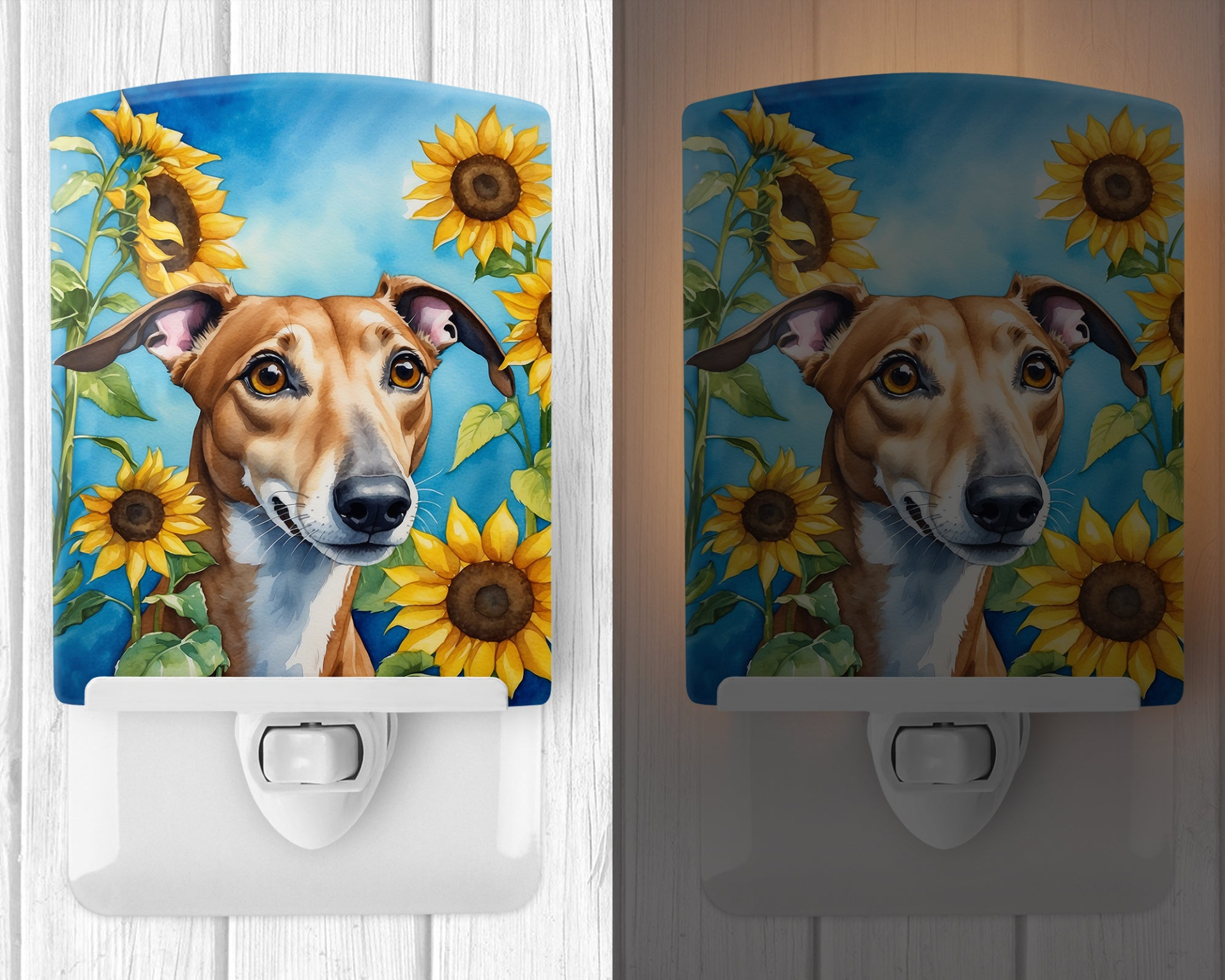 Ceramic Night Light featuring breed specific Greyhound artwork. Introduce a splash of artistic flair and subtle illumination to your space with the Decorative Ceramic Night Light from Caroline's Treasures. Perfect for any room, this night light seamlessly blends functionality with an aesthetic appeal, offering a stylish solution to brighten up dark corners of your home or office. Boasting a six-inch high by four-inch wide ceramic tile at the front, it showcases vivid, full-color artwork from distinguished artists, transforming a simple utility into a vibrant art piece. The artwork is securely encased in a robust metal holder, ensuring durability and longevity. Two screws are provided to firmly affix the tile into the holder. The holder extends three inches deep, housing an included bulb that emits a soft, welcoming glow. This product meets all safety standards, as evidenced by its UL approval. Proudly made in the United States from imported components, this Decorative Ceramic Night Light is not just a functional device; it's a statement piece that enhances the ambiance of your surroundings.
