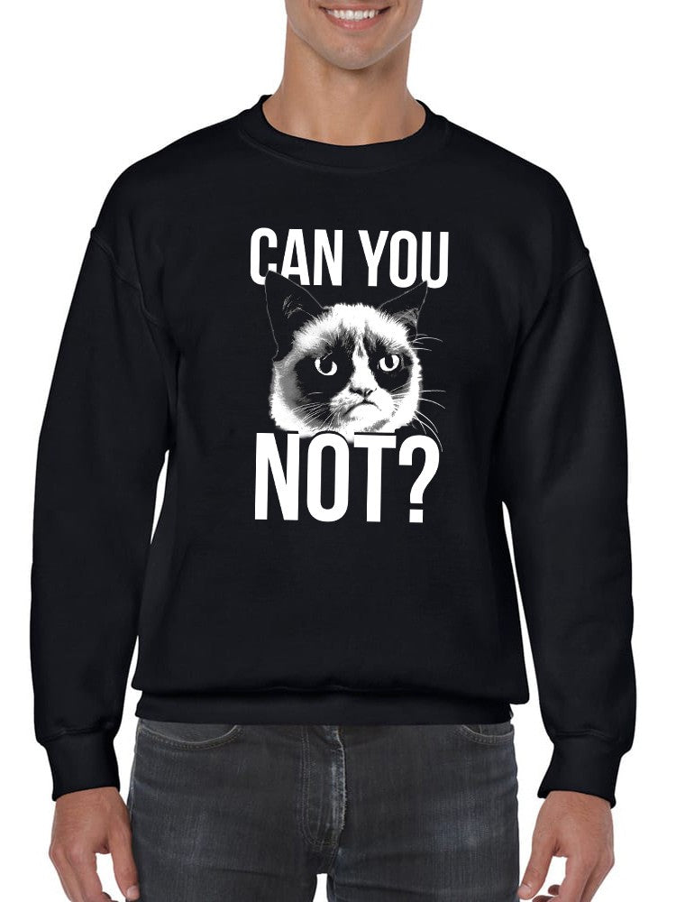 Look cool with this black and white Grumpy Cat art, whit the famous hate expression of the cat and the tagline: can you not? Men's Black Sweatshirt. Design by Grumpy Cat.