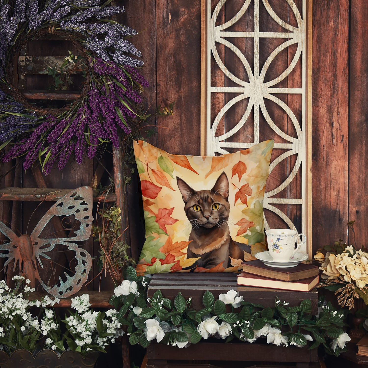 Throw Pillow featuring breed specific Havana Brown artwork. Celebrate Halloween with this Halloween Pillow. Add a touch of vibrancy and comfort to your outdoor seating with Caroline's Treasures Fabric Decorative Pillow. Measuring approximately 14 inches by 14 inches, this outdoor pillow is crafted to elevate the appeal of your patio furniture, infusing it with vivid color and artistic flair. The pillow includes a 100% Polyester Fabric sham filled with a quality pillow form to provide superior comfort. Innovatively made from our brand new material, specifically woven for its water resistance, this pillow is designed for durability. The soft canvas fabric offers versatility in use, fit for your indoor couch or your outdoor patio, porch, or veranda. The fabric is dyed with colorfast dyes built for resilience against weather conditions, ensuring the pillow retains its beauty over time. Constructed by sewing three fabric pieces to create a sham, the polyester insert is then nestled inside to form the pillow, resulting in an overstuffed pillow that maintains its shape. Both the sham and the pillow insert are proudly made in the United States. As the pillows are handcrafted, there may be minor variations in size, further enhancing their unique charm. Experience comfort in style with Caroline's Treasures Fabric Decorative Pillow.