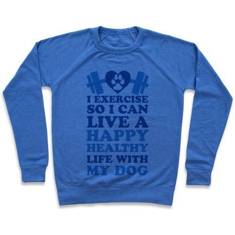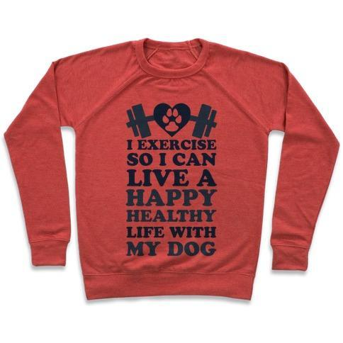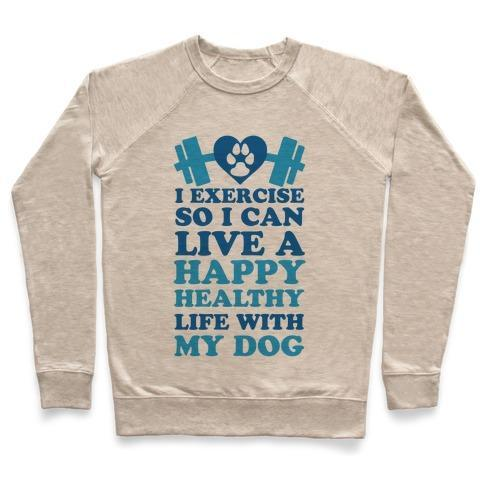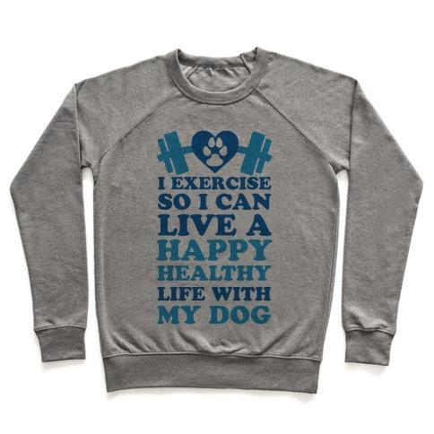 I EXERCISE SO I CAN LIVE A HAPPY HEALTHY LIFE WITH MY DOG CREWNECK SWEATSHIRT