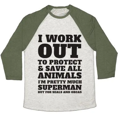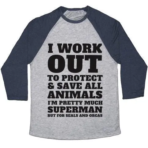 I WORK OUT TO PROTECT ALL ANIMALS UNISEX TRI-BLEND BASEBALL TEE