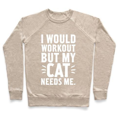I WOULD WORKOUT BUT MY CAT NEEDS ME CREWNECK SWEATSHIRT