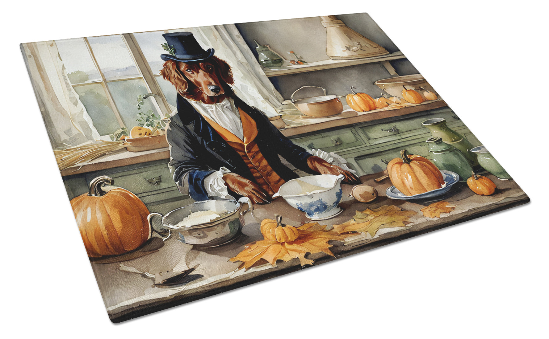 Irish Setter Fall Kitchen Pumpkins Glass Cutting Board