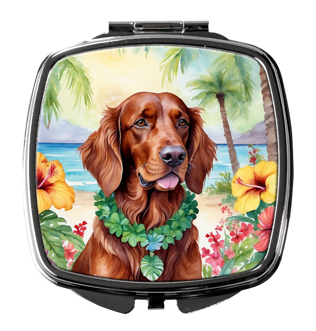 Compact Mirror featuring breed specific Irish Setter artwork. Introducing our Square Compact Mirror, a blend of elegance, functionality, and compactness, perfect for on-the-go touch-ups. This Silvertone metal mirror, with dimensions of 2.75 inches x 3 inches x .3 inches, fits effortlessly into your purse, handbag, or pocket, ensuring that you can check your appearance anytime, anywhere. Our compact mirror stands out with its eye-catching artwork on the front, adding a dash of style to this practical accessory. It is more than just a mirror; it's a statement piece that reflects your personality and aesthetic. When opened, this compact reveals two mirrors inside, doubling your perspective for precise touch-ups. The Silvertone metal construction ensures durability while maintaining a lightweight feel, making it an ideal everyday carry item. Whether you're rushing to a meeting, prepping for a dinner date, or just need a quick check on your look, our Square Compact Mirror is your reliable companion. Experience the perfect blend of style and practicality with this must-have accessory.