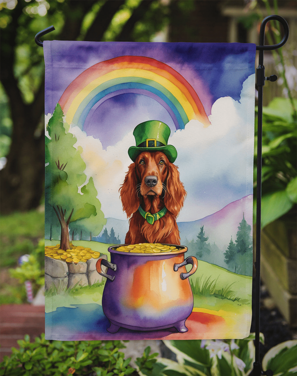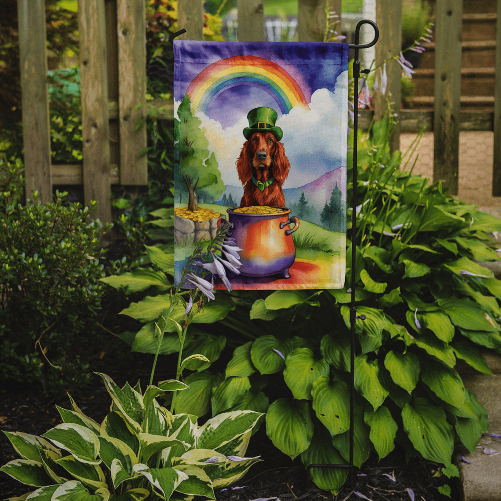 Celebrate St Patrick's Day with a charming Irish Setter garden flag that adds character to your outdoor spaces. This two-sided, double-ply flag showcases breed-specific artwork that stays vivid from every angle. Built to endure the elements, it brings a touch of warmth and whimsy to your garden, patio, or yard while you welcome guests with seasonal flair. Proudly made in the USA by Caroline's Treasures, it blends color, craft, and heart for pet parents who want style + durability.