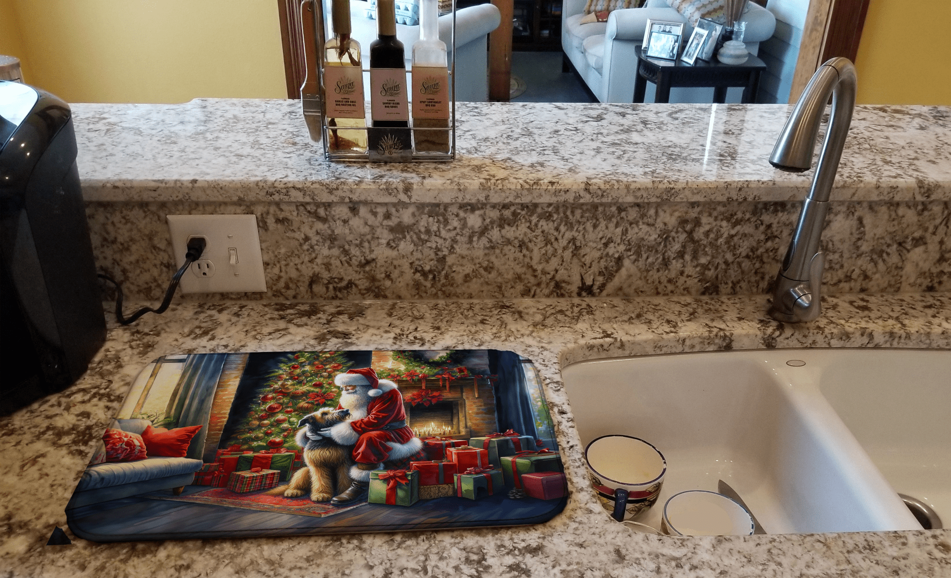 Irish Wolfhound and Santa Claus Dish Drying Mat
