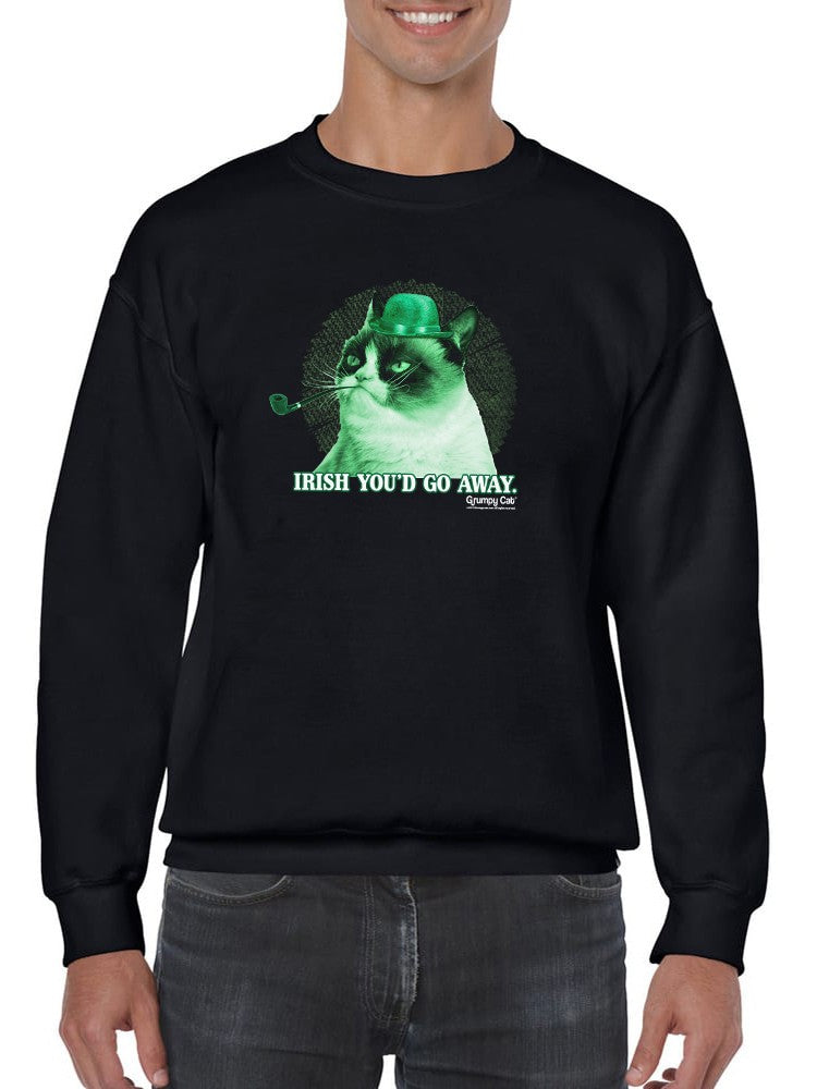 Irish You'd Go Away Grumpy Cat Sweatshirt Men's -T-Line Designs
