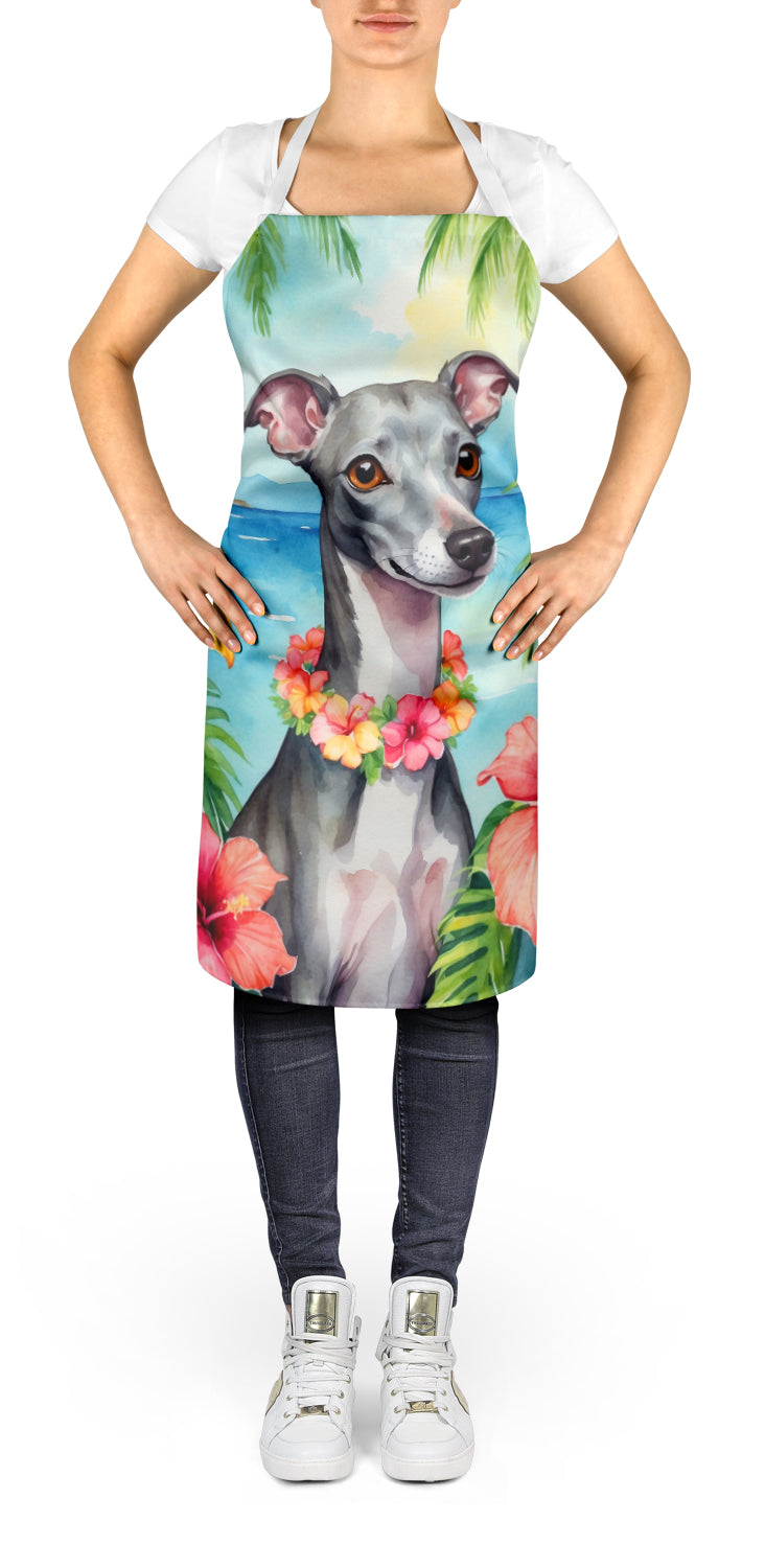 Apron featuring breed specific Italian Greyhound artwork. Elevate your cooking, baking, and grilling experiences with our versatile Kitchen or BBQ Apron. This Bib Style apron isn't just limited to culinary activities - it also serves as an excellent baking apron, artist apron, server apron, gardening apron, or even a dog grooming apron. The apron showcases vibrant full-color artwork contributed by one of our talented artists, bringing a dash of style to your daily tasks. With dimensions of approximately 27"W x 30"H, it provides ample coverage to protect your clothing from spills and splashes. Our apron is meticulously crafted from 100% Ultra Spun Polyester, known for its durability and lightweight nature. The apron comes with white tie straps, ensuring a comfortable and adjustable fit for all. It's a perfect choice for kitchen apron enthusiasts, whether you are a woman or a man. Designed for easy maintenance, this apron is fully machine washable. The quick-drying polyester material actively reduces staining, keeping your apron looking fresh and new for longer. Our beautifully designed apron isn't just a functional kitchen accessory - it's a fashion statement in the culinary world!