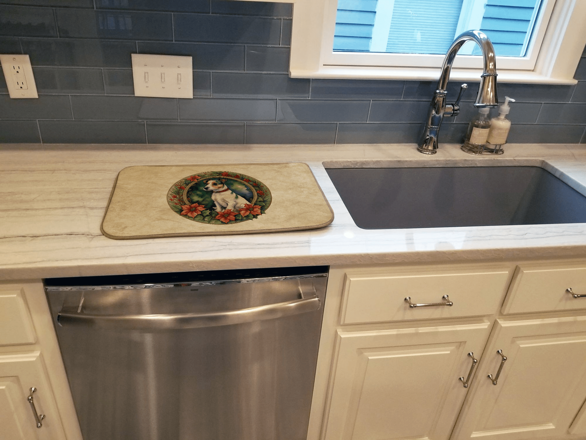 Jack Russell Terrier Christmas Flowers Dish Drying Mat