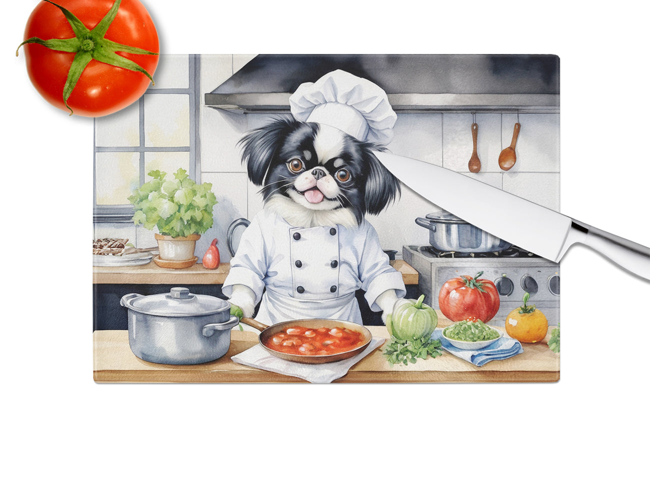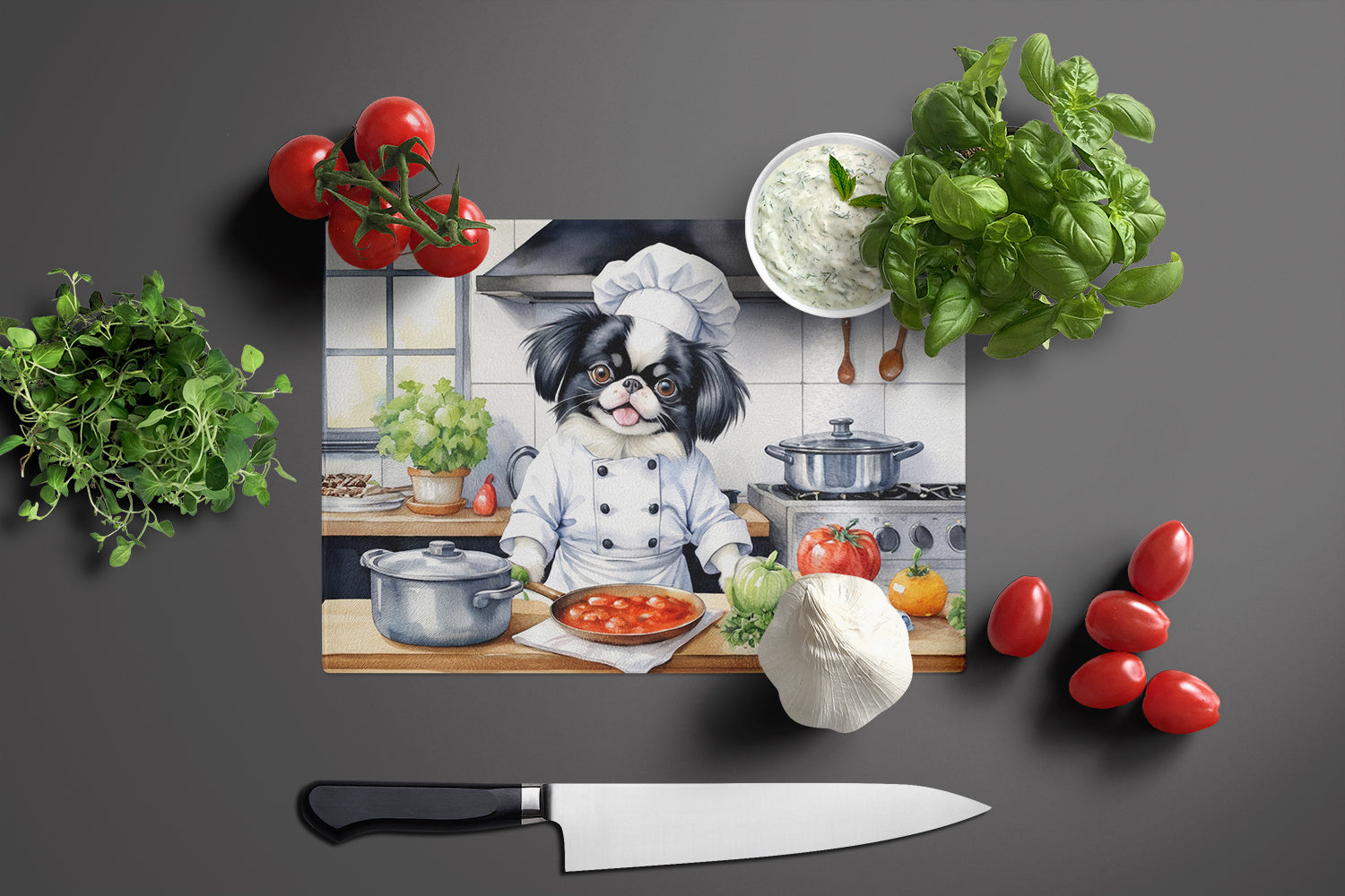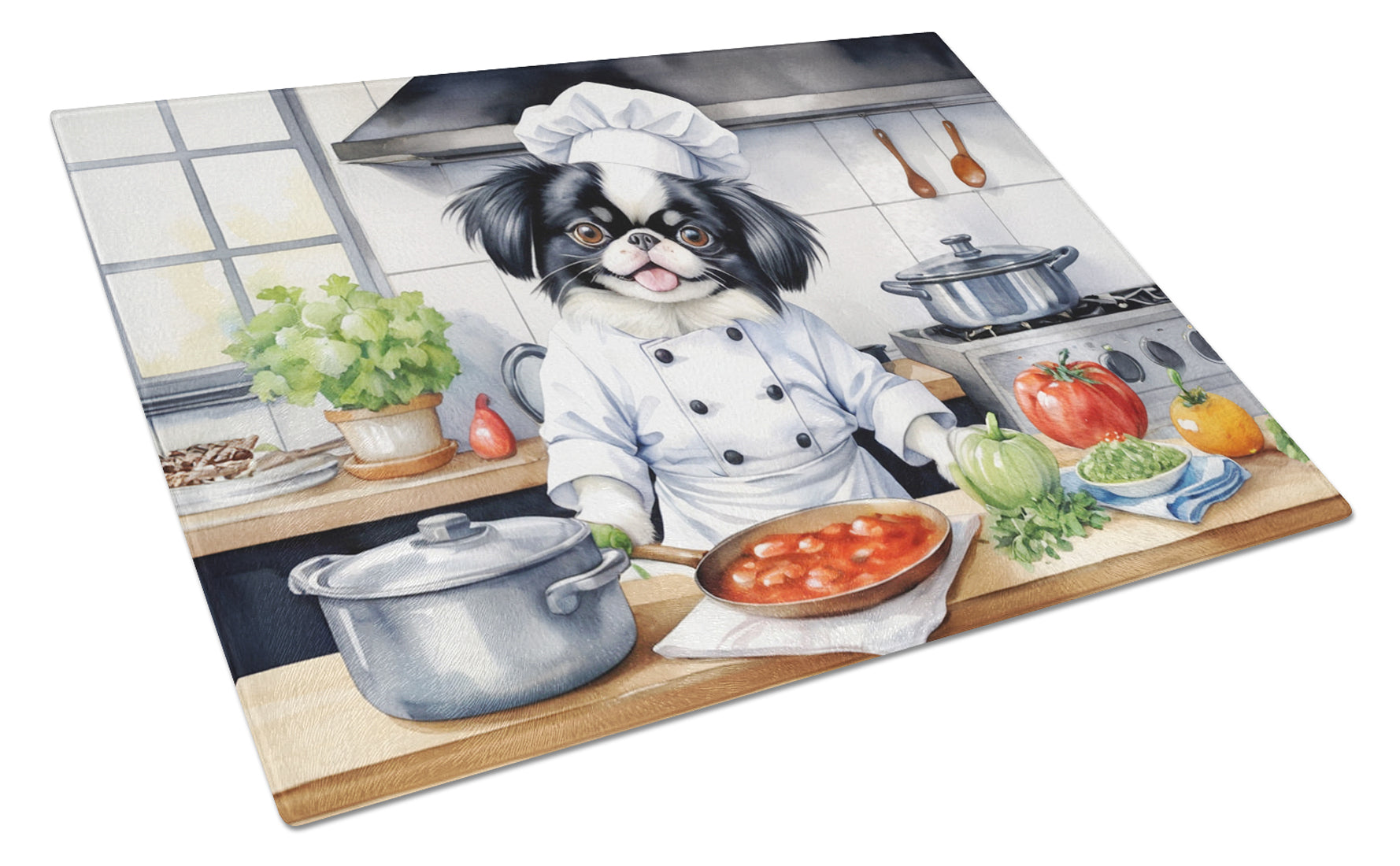 Glass Cutting Board featuring breed specific Japanese Chin artwork. Introduce your kitchen to the vibrant, large Decorative Glass Cutting Board from Caroline's Treasures. Crafted from resilient tempered glass, this board is not only a utilitarian necessity but also a colorful art piece. With its generous dimensions of 15 inches in height and 12 inches in length, it offers ample space for all your cutting needs. Every piece showcases captivating artwork from distinguished artists, bringing an aesthetic edge to your kitchen. Beyond its attractive design, this cutting board ensures your countertop stays pristine and unscathed, owing to its heat-resistant properties. Engineered with user convenience in mind, it features non-skid feet for stability, and rounded corners for additional safety. Its robust construction renders it virtually unbreakable, guaranteeing longevity. The board comes with protective feet bumpers, maintaining its position during use. This product is recommended to be hand washed only. Proudly printed and assembled in the United States, this cutting board exemplifies superior craftsmanship. With Caroline's Treasures' Decorative Glass Cutting Board, you're investing in a blend of functionality and artistic flair.