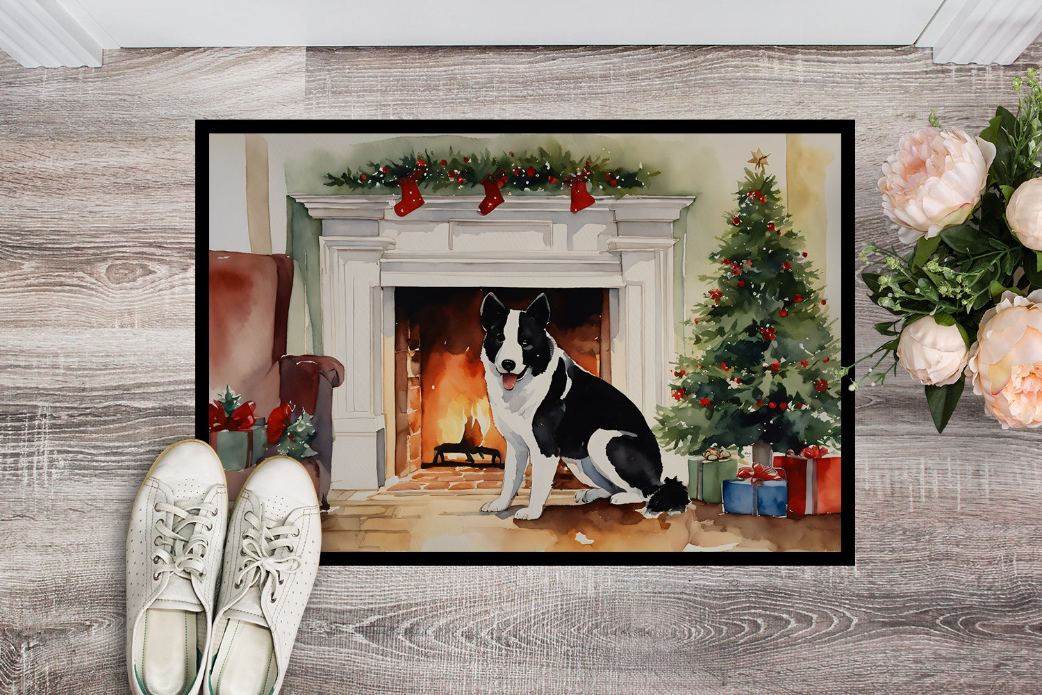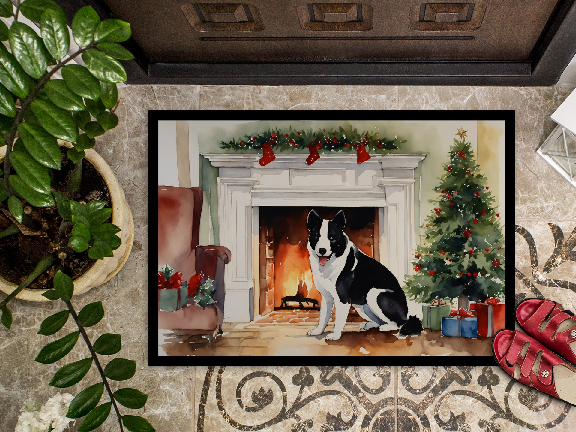 Doormat featuring breed specific Karelian Bear Dog artwork. Celebrate Christmas with this Christmas Doormat. Welcome your guests in style with our Artwork Door Mat, designed to withstand almost any weather condition. This mat, measuring approximately 18 by 27 inches, is held together by durable black binding tape. Its top layer, composed of polyester felt, is dyed with the eye-catching image you see on the mat. A few layers below provide the mat with stability, while its rubber bottom is stamped to help prevent slipping and ensures safety. Our mat works wonderfully as both an indoor or outdoor door mat. For cleaning, simply hose it off with water or use a power washer - no need for any cleaner that produces suds. Avoid scrubbing with a brush, instead, opt for the vacuum on floor setting. Designed manufactured and printed in the USA, this mat is a perfect addition to your porch, outdoor kitchen, entryway, or any indoor space. Its unique design makes it a charming decorative rug that greets your guests and adds a stylish touch to your home decor.